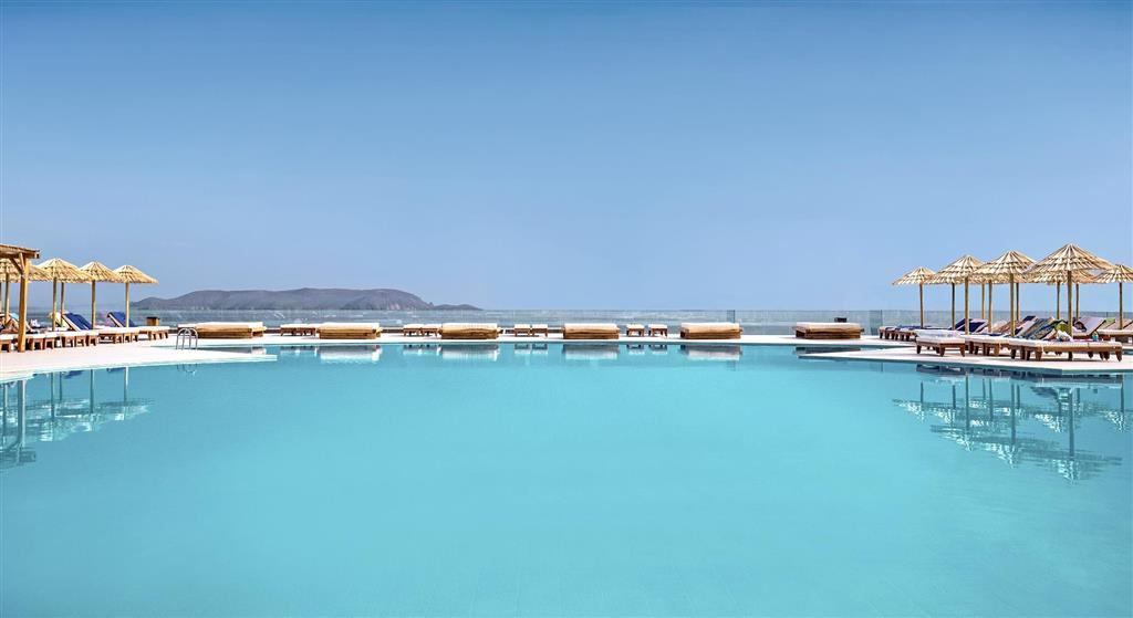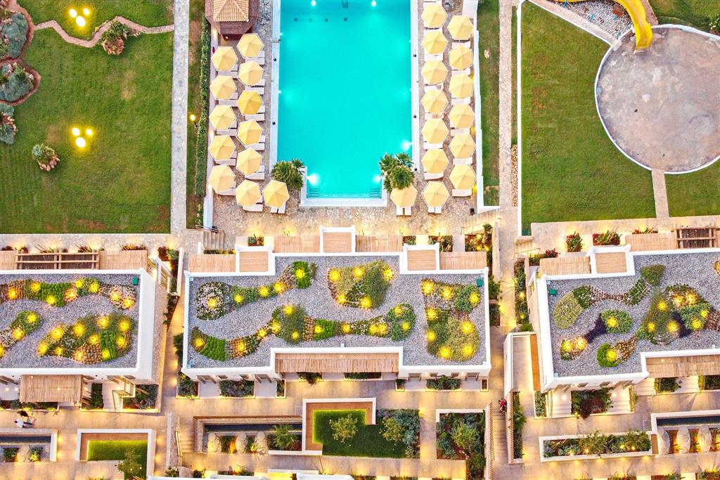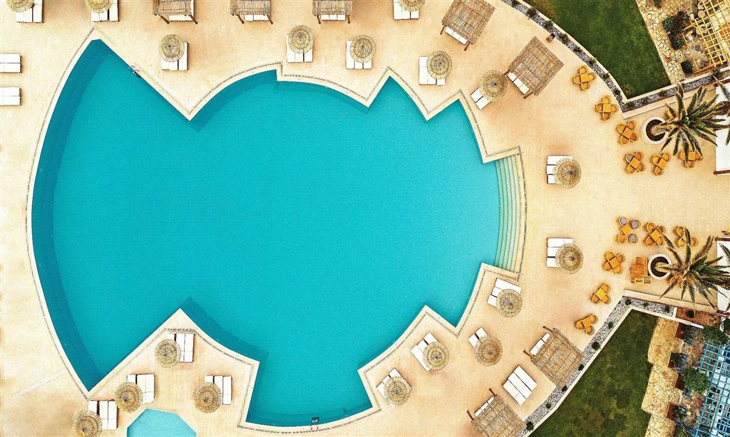 Hlavná budova a niekoľko vedľajších budov v záhrade, vstupná hala s recepciou, hlavná reštaurácia, reštaurácia a la carte, lobby bar, minimarket. Vonku niekoľko bazénov so slanou vodou, bazény pre deti (jeden so šmykľavkou), bar pri bazéne. Terasa na slnenie s ležadlami, slnečníkmi a osušky zadarmo.