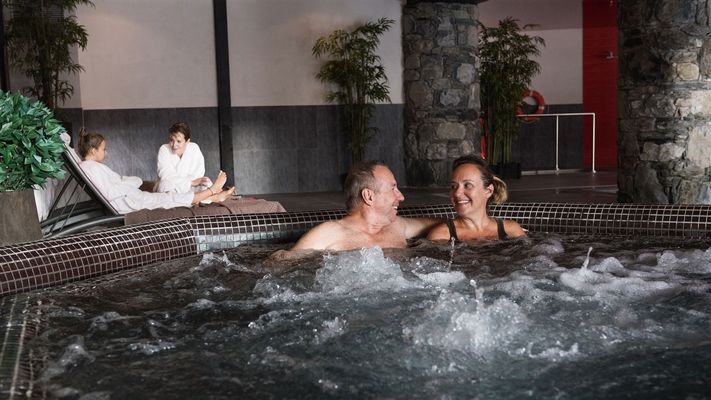 Vstup do wellness centra: krytý vyhrievaný bazén, vírivky, sauny, hammam, fitness