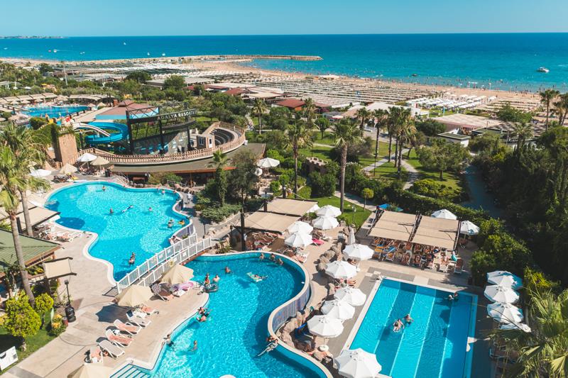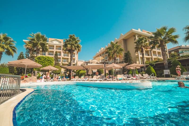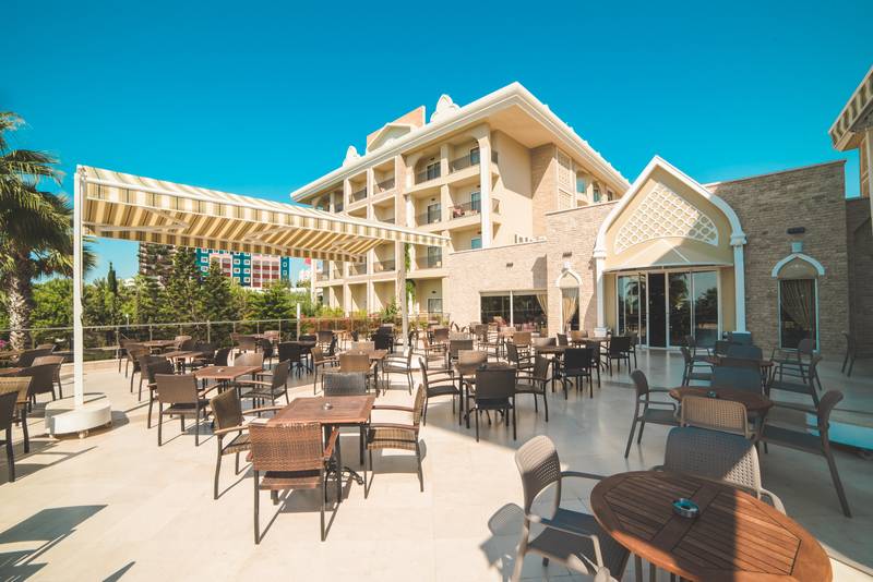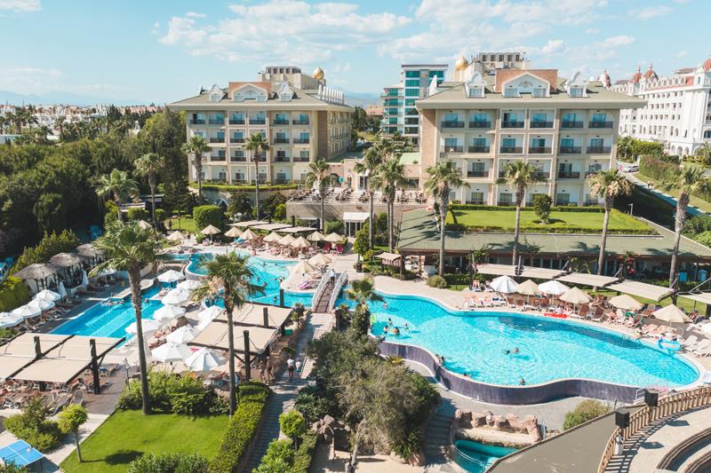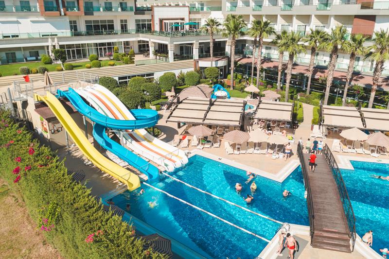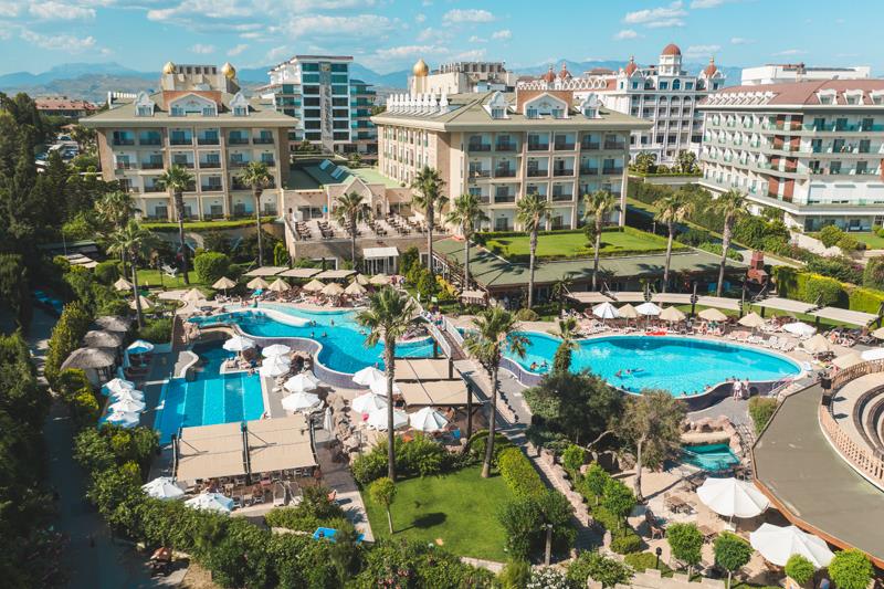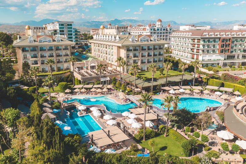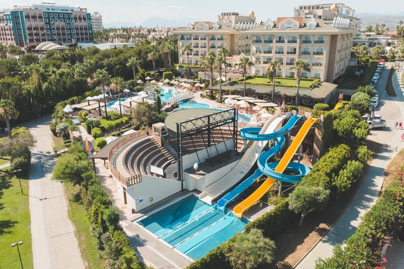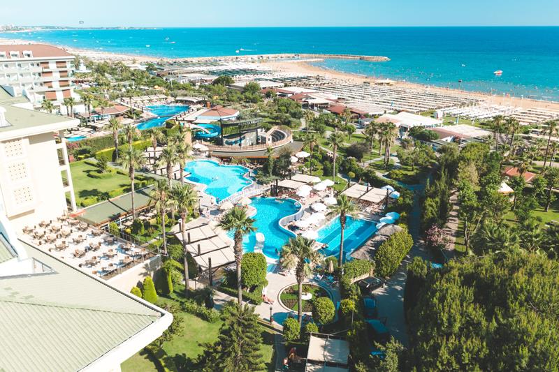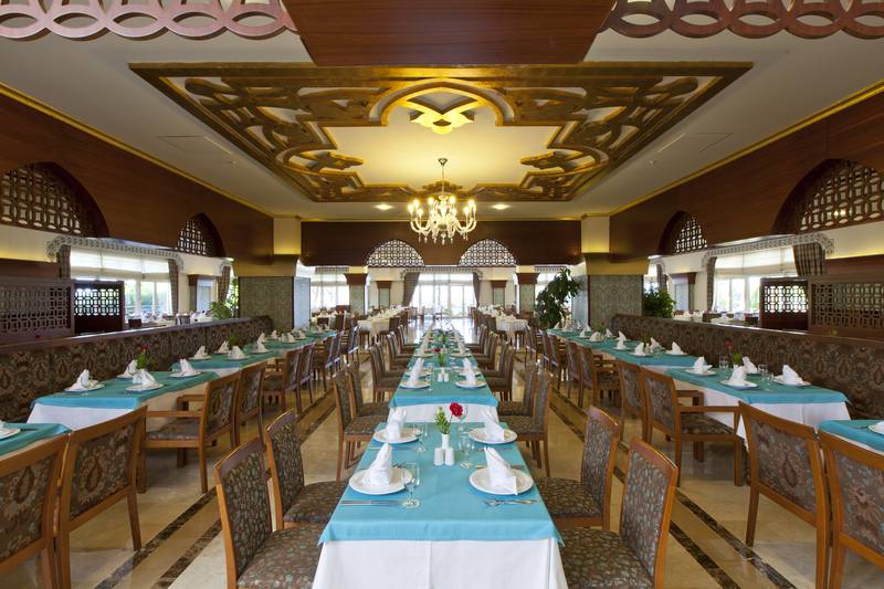 hlavná reštaurácia s terasou • turecká a la carte reštaurácia • talianska a la carte reštaurácia • a la carte reštaurácia s rybími špecialitami • steak house • snack bar na pláži • bar pri bazéne • bar na pláži • lobby bar • 24h bar • disko bar • coffee corner • cukráreň • nákupná pasáž so zlatníctvom, obchodom so suvenírmi a kabelkami • boutique • lekár na vyžiadanie • bezplatné Wi-Fi pripojenie • SPA a wellness centrum • kaderníctvo • mini knižnica • masáže • hlavný vonkajší bazén • relaxačný bazén • aquapark s 3 šmýkačkami • fitnescentrum • stolný tenis • šípky • plážový volejbal • boccia • aerobik • aquagym • vodné športy na pláži • medzinárodný animačný tím