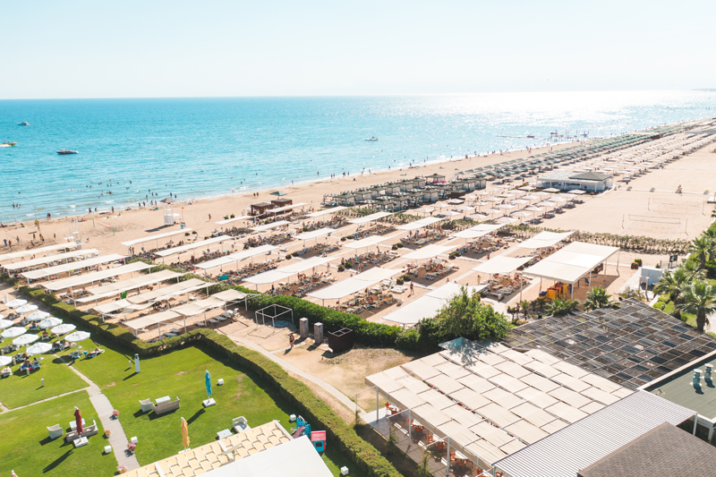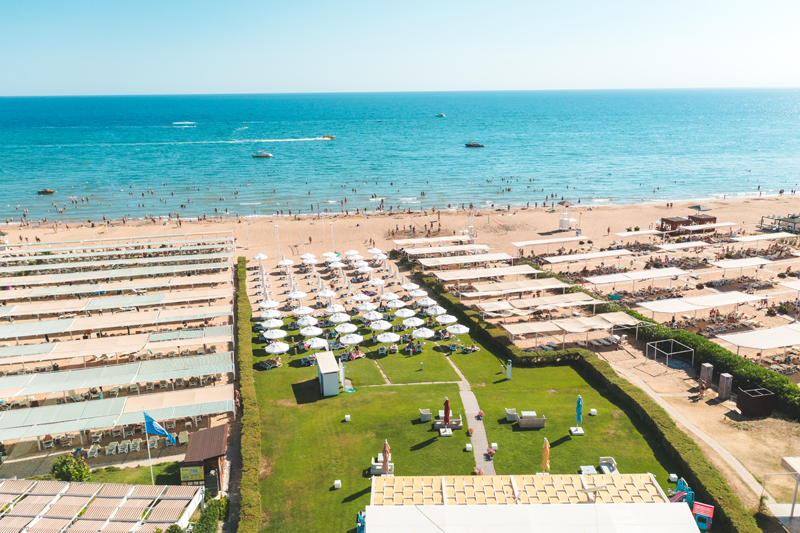 nádherná piesková pláž ocenená Modrou vlajkou • pozvoľný vstup do mora • bezplatný plážový servis • centrum vodných športov za poplatok