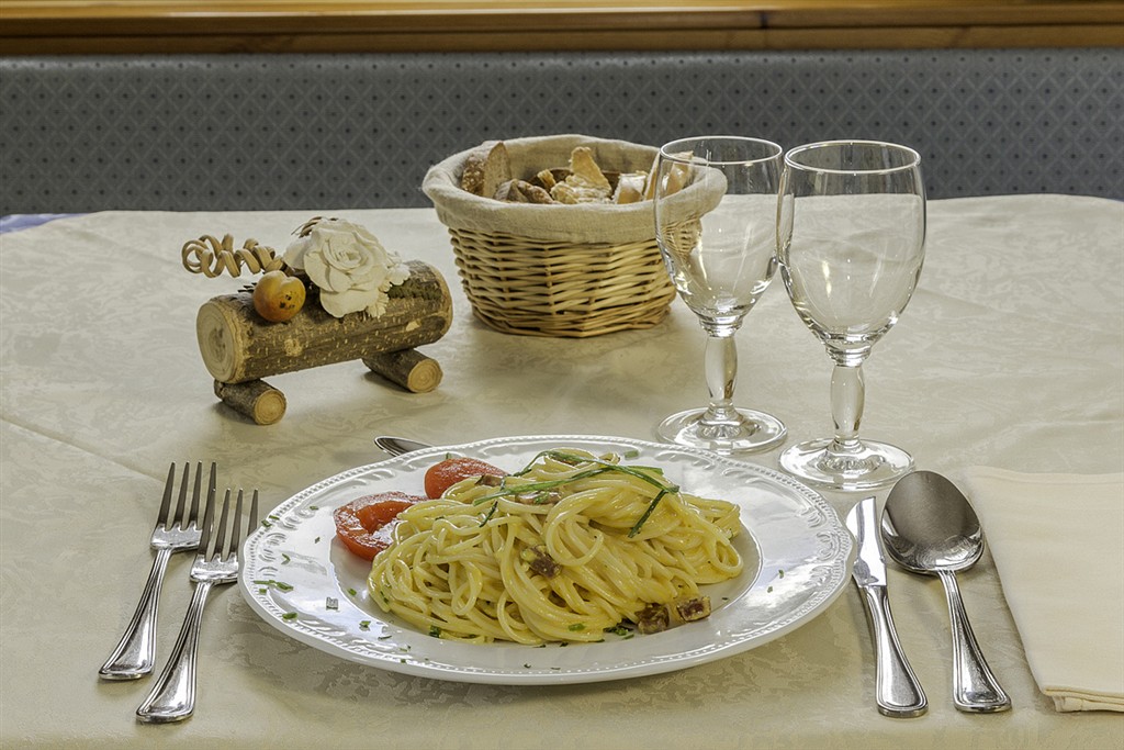 večera: servírované menu s výberom z 2 teplých predjedál , 1 hlavné jedlo s prílohou, servírovaný dezert, nápoje za poplatok