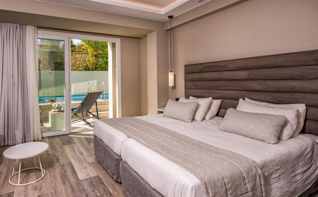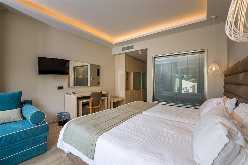 TYPY IZIEB: Štandardná izba (20-28m2, s možnosťou 1-2 prísteliek s výhľadom do záhrady) • Štandardná izba (20-28m2, s možnosťou 2 prísteliek s bočným výhľadom na more) • Štandardná izba swim up (25-28m2, pre 2 osoby alebo s možnosťou 2 prísteliek, terasa na slnenie, priamy vstup do zdieľaného bazéna)