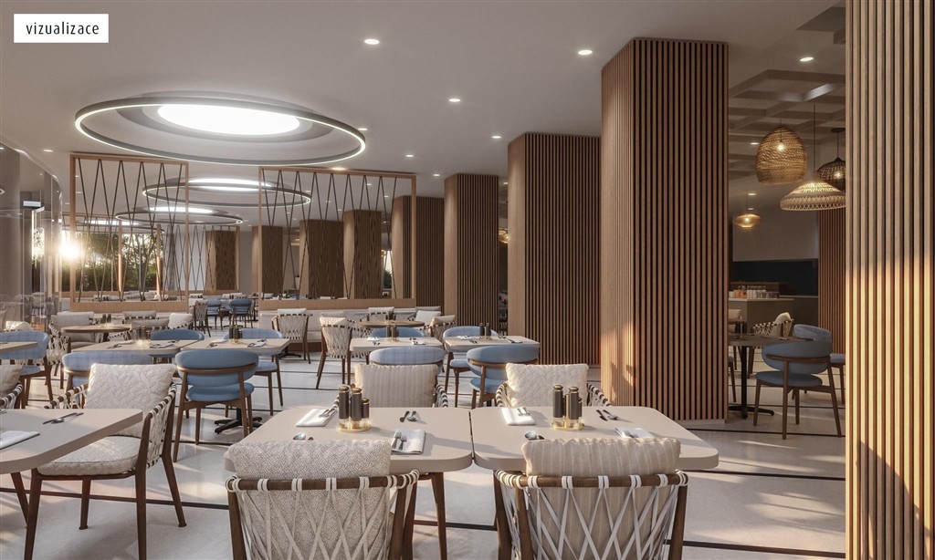 Vstupná hala s recepciou, hlavná reštaurácia, reštaurácia a la carte, dva bary, snack bar, dva bazény, wellness centrum, posilňovňa, nočný klub