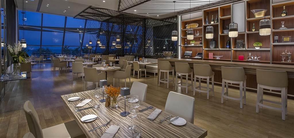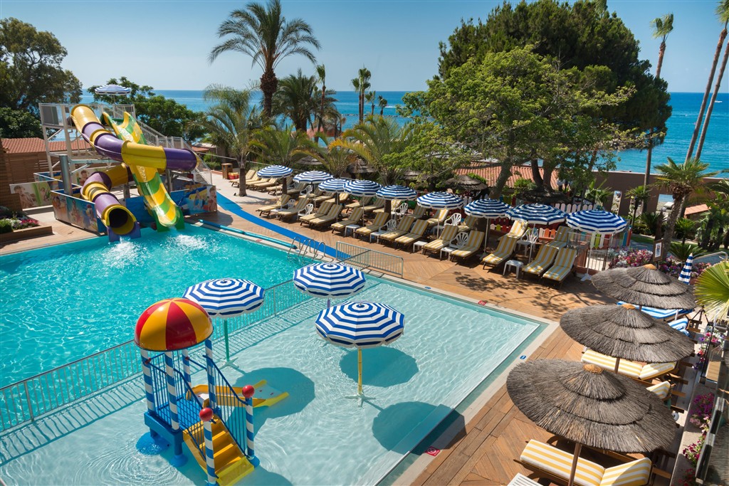 196 izieb a apartmánov, vstupná hala s recepciou, lobby bar, hlavná reštaurácia, výťah, niekoľko a la carte reštaurácií, taverna s výhľadom na more, nákupná galéria, konferenčná miestnosť. Vonku hlavný bazén, bazén len pre dospelých, detský bazén so šmykľavkami, slnečná terasa, ležadlá, slnečníky a plážové osušky zadarmo.