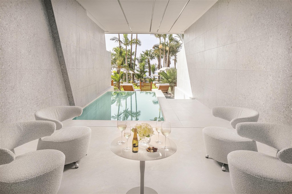 Vybavenie izby: Dvojlôžková izba, Superior: kúpeľňa, WC, sušič vlasov, župany a papuče, klimatizácia, telefón, minibar (za poplatok), TV/sat., set na prípravu kávy a čaju, trezor, 31 m2. Dvojlôžková izba, Superior, výhľad na more: balkón, 26 m2. Súkromná suita Junior, výhľad na more, súkromný bazén: prízemie alebo 1. poschodie, balkón so súkromným bazénom, 40 m2. Junior Suite, súkromný bazén: prízemie, terasa so súkromným bazénom, 42 m2.