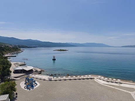 POLOHA v mestečku Novi Vinodolski, cca 500 m od centra a nákupných možností • v okolí je veľa kultúrnych pamiatok a prírodných krás • hotel situovaný priamo pri pláži, casa (depandance) 100 m od hotela • upravená kamienková a skalnatá pláž • slnečníky a ležadlá na pláži (za poplatok) • bar na pláži (za poplatok) • 8 km od Crikvenice