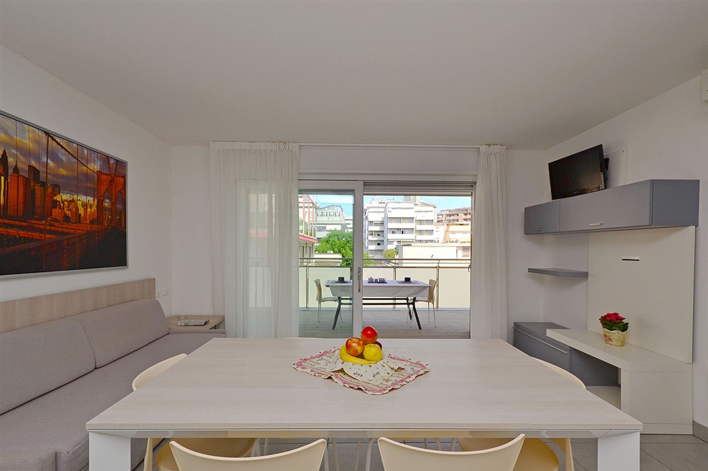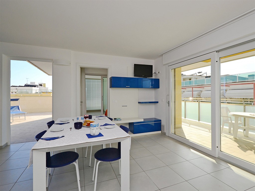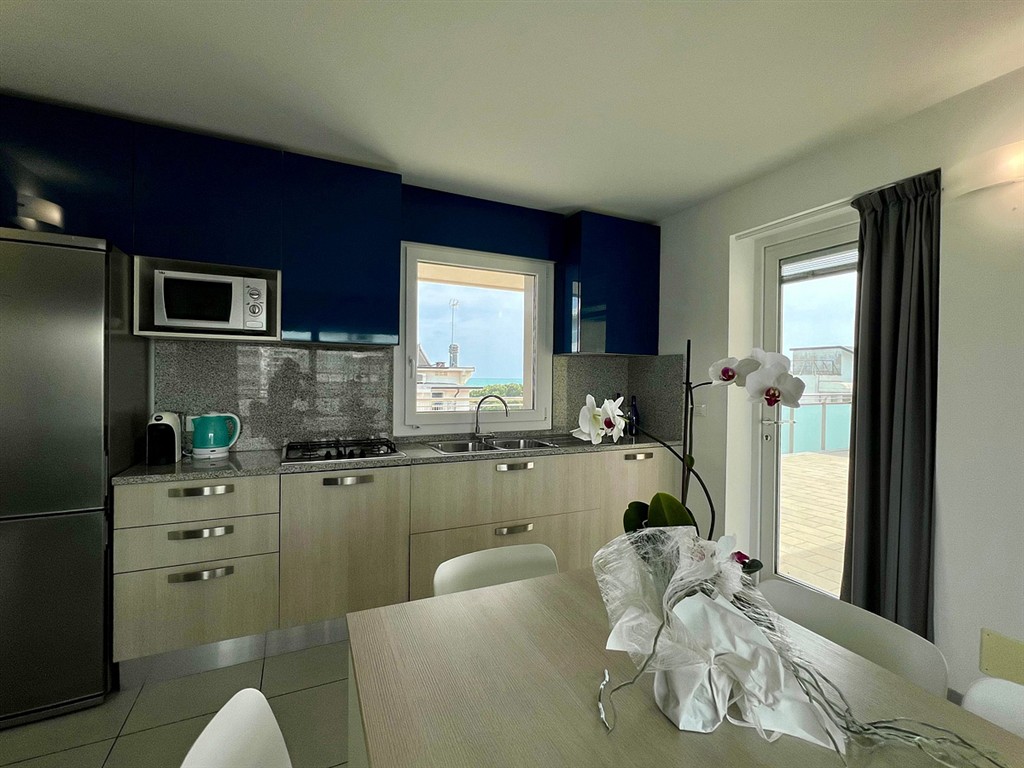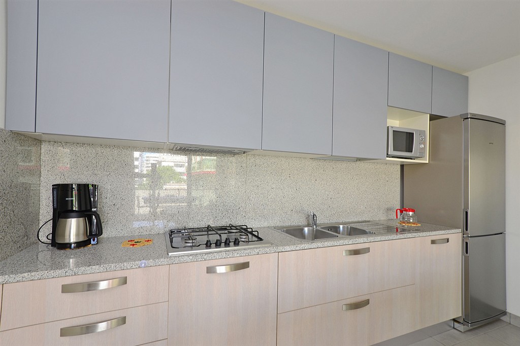 Popis apartmánov: trilo 7: prízemie so samostatným vstupom: 1 spálňa s manželskou posteľou a 1 samostatným lôžkom, 1 spálňa s 2 samostatnými posteľami, obývacia izba s kuchyňským kútom a rozkladacím gaučom pre 2 osoby, sociálne zariadenie so sprchovým boxom trilo 8: 2x spálňa s manželskou posteľou a 1 samostatným lôžkom, obývacia izba s kuchyňským kútom a rozkladacím gaučom pre 2 osoby, sociálne zariadenie so sprchovým boxom, balkón; apartmány označené trilo 8B majú priestrannejší balkón quadrilo 8: 1 spálňa s manželskou posteľou a 1 samostatným lôžkom, 2 spálne s manželskou posteľou, obývacia izba s kuchynským kútom a rozkladacím gaučom pre 2 osoby, 2 sociálne zariadenie so sprchovým boxom, priestranný panoramatický balkón s výhľadom na more