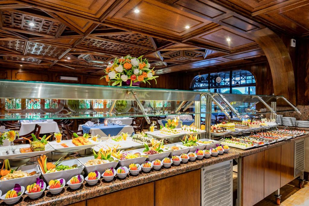 niekoľkými reštauráciami(hlavná,pri pláži,2xa´la carte), lobby bar, snack bar, plážový bar práčovňou, konferenčnými miestnosťami,