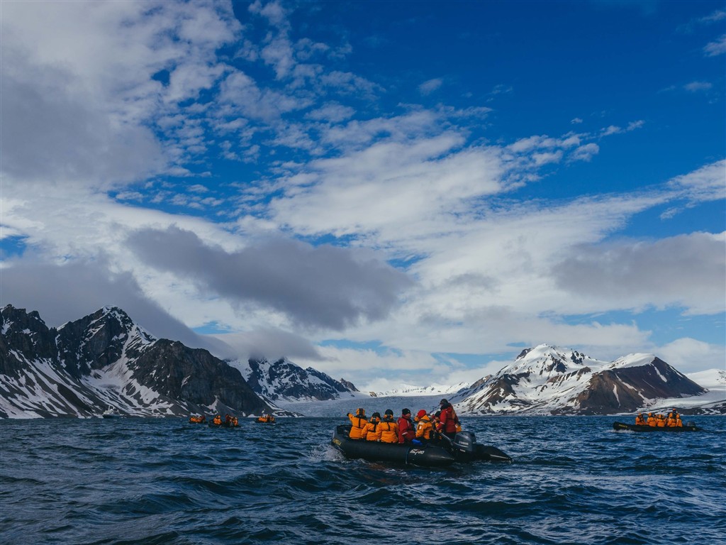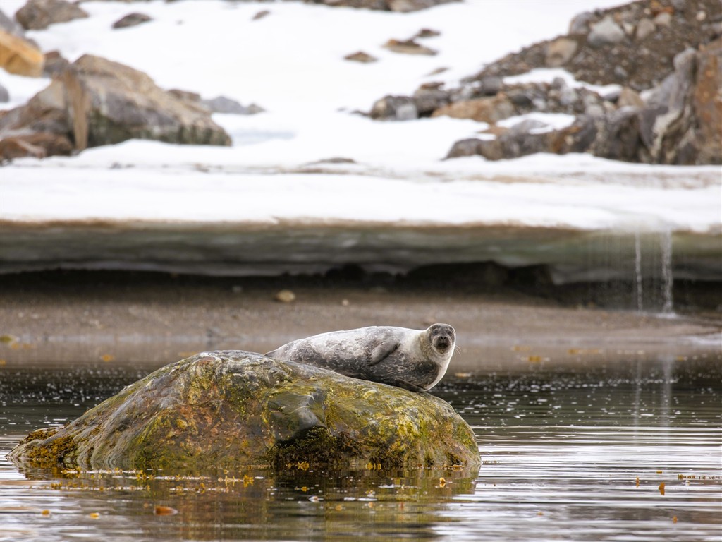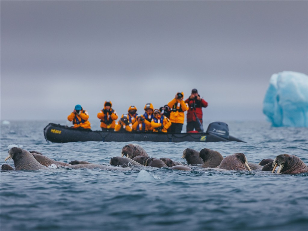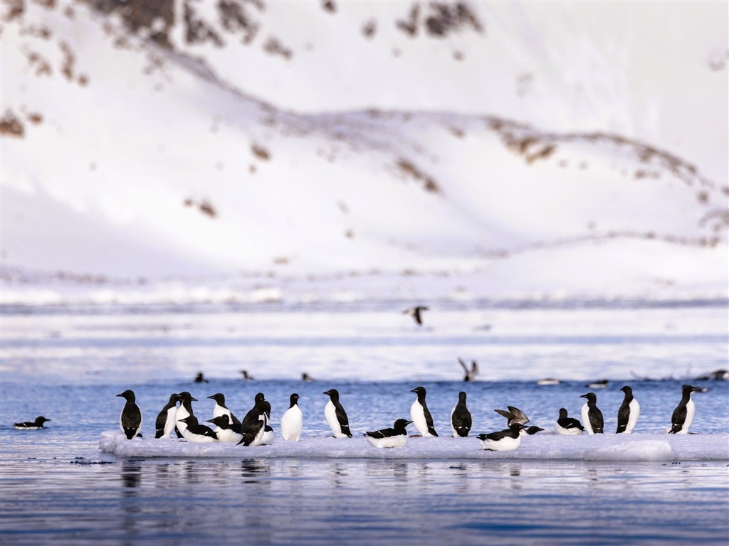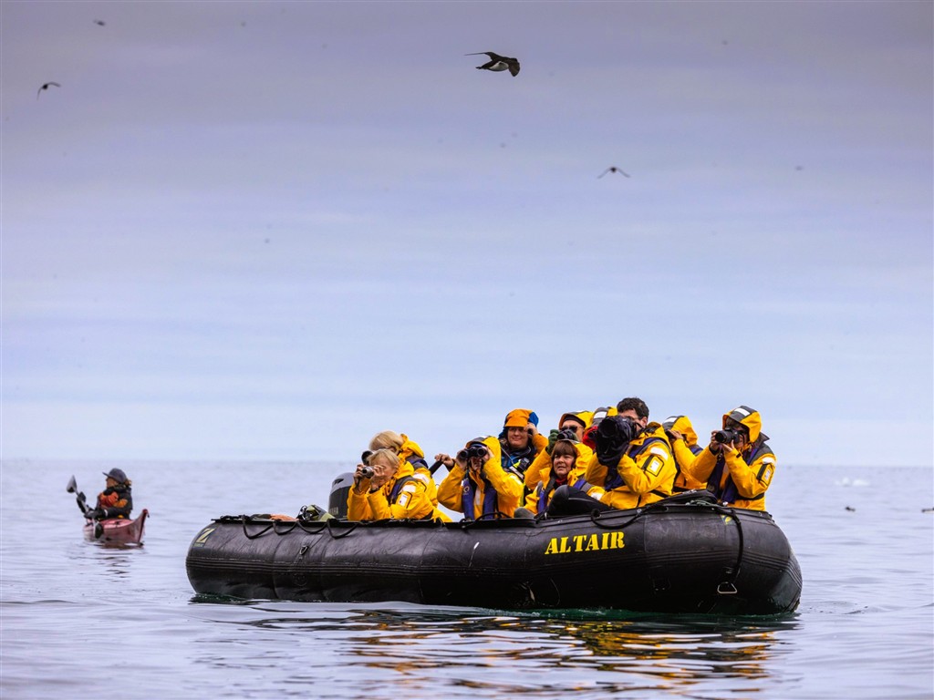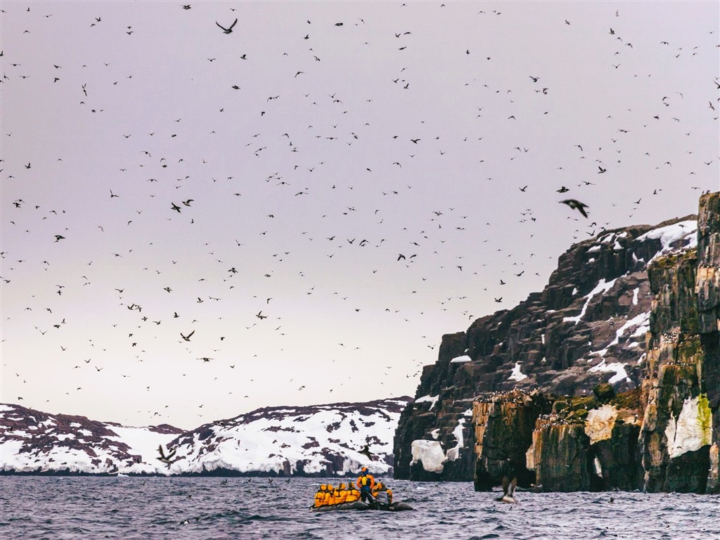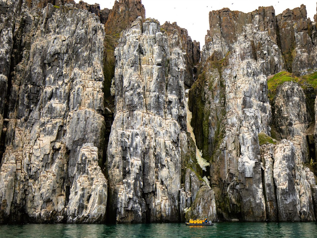 Ak budú podmienky priaznivé, oboplávame ostrov na nafukovacích člnách Zodiac, obdivujúc sopečný vrch a dramatické vrstvené útesy na severnom pobreží. Jan Mayen je významnou lokalitou pre vtáky, kde hniezdia tisíce morských vtákov, vrátane severných fulmarov, malých alk, sivých čajok, kitiwák a rôznych druhov guillemotov. S trochou šťastia uvidíte aj milé „morské papagáje“ – atlantické masky. Bohaté vody ostrova sú domovom veľrýb – minke, plejtvákov, modrých a hrbáčov, ktoré často plávajú v blízkosti brehov. Sledujte obzor a nechajte sa očariť týmito nádhernými tvormi divokej arktickej prírody.
