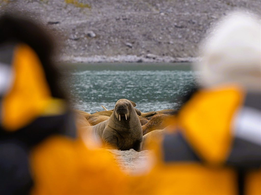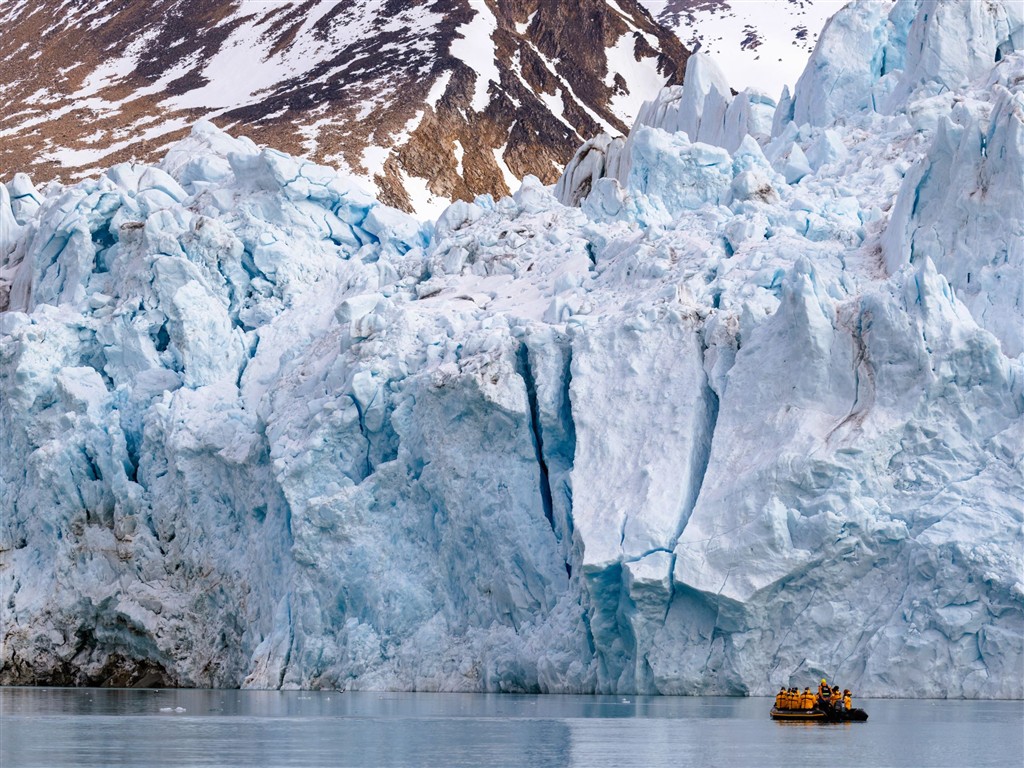Ak to počasie a more dovolia, pri priblížení sa na palube sledujte, ako sa vynorí vrchol ostrova, ktorý pripomína lyžicu. S výškou 2 277 metrov dominuje Beerenberg – dychberúci sopka s pravidelným kužeľovitým tvarom a úchvatnými ľadovcami stekajúcimi priamo do mora. Počas leta je nižšia časť ostrova pokrytá zelenou trávou, machom a odolnými kvetmi, ktoré oživujú čiernu sopečnú krajinu. Navštívime osadu Olonkinbyen, pomenovanú po rusko-nórskom polárnom prieskumníkovi Gennadym Olonkinovi, kde sa nachádza meteorologická stanica. Tu budete mať možnosť nahliadnuť do sveta polárneho výskumu a sledovať, ako sa monitoruje počasie na jednom z najodľahlejších miest sveta.