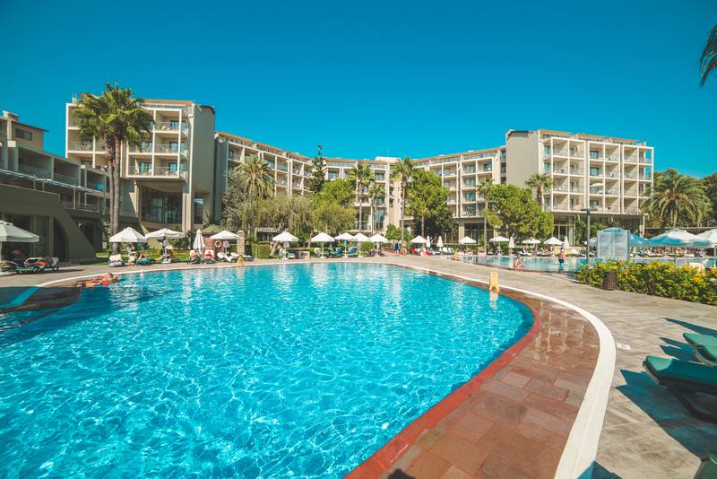 Luxusný hotel s vynikajúcimi službami je situovaný priamo pri krásnej pieskovej pláži s pozvoľným vstupom do mora. S antickým mestom Side spája hotel promenáda pri pláži.