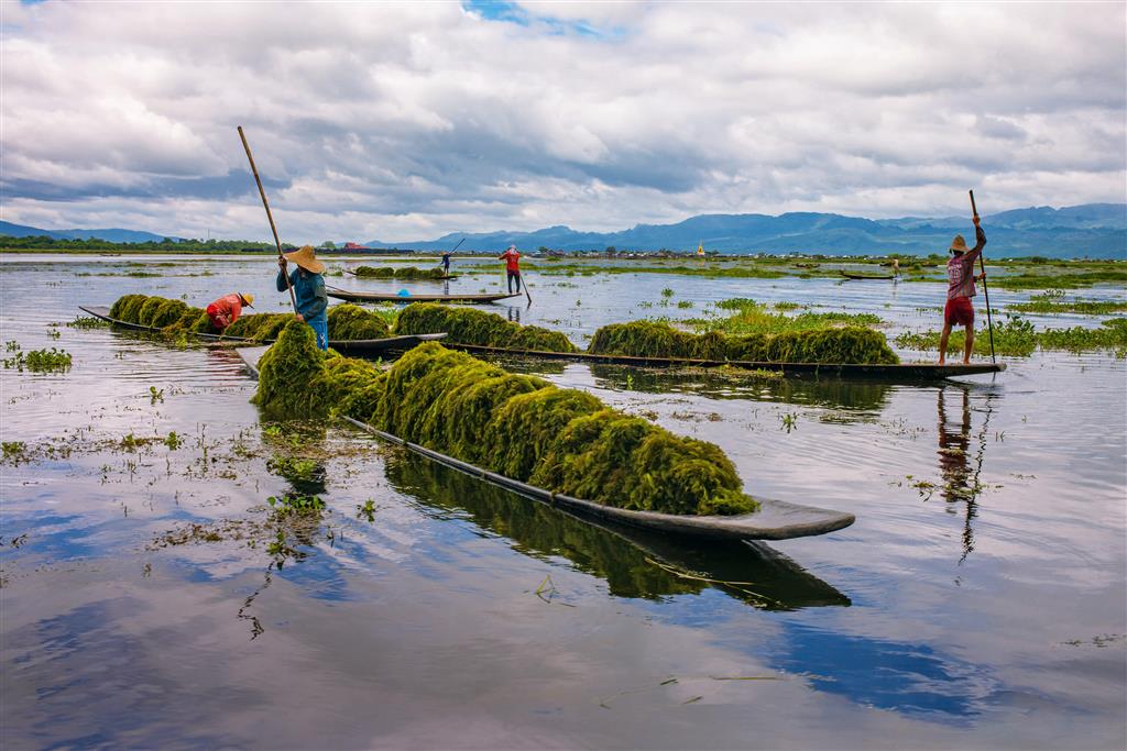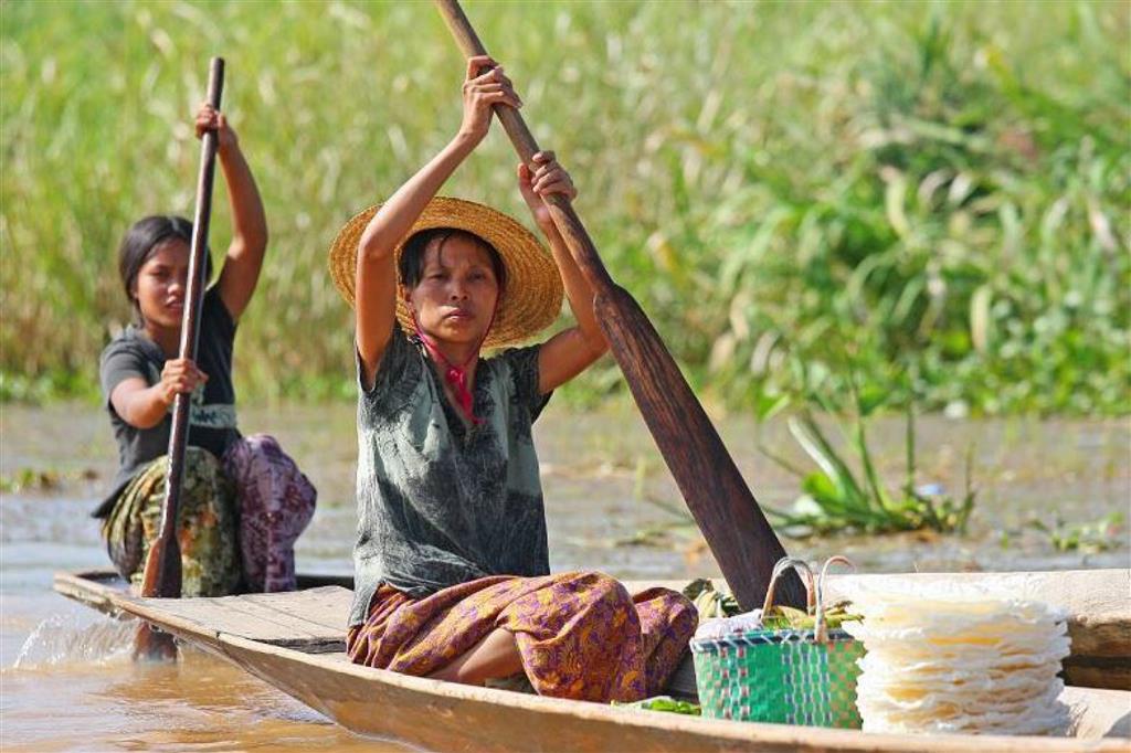 JAZERO INLE: prírodný skvost a neuveriteľná exotika. Jazero, kde sa vesluje nohami. Jeden z vrcholov našej cesty. V kláštore skákajúcej mačky si porozprávame o čare barmského budhizmu, zastavíme sa vo fabričkách na barmské cigary, látky a ostré nože priamo na vode. Na motorových člnoch zbrázdime jazero vysoko v horách. Možno vám pripomenie Titicacu, no v Bolívii nežijú dlhokrké ženy.