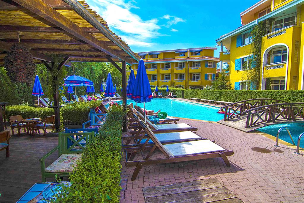 Reštaurácia so záhradou, niekoľko barov, vonkajší bazén, úschovňa batožín, šípky, stolný tenis, detský kútik.