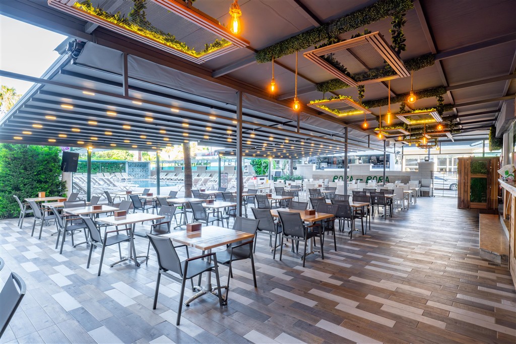 62 izieb umiestnených v hlavnej budove, vstupná hala s recepciou, hlavná reštaurácia, bar, lekár, požičovňa áut, bazén, detský bazén, terasa na slnenie, lehátka a slnečníky zdarma.