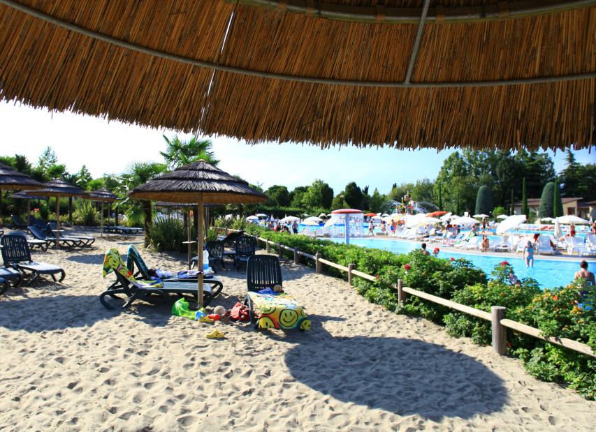 Camping BELLA ITALIA (Via Bella Italia) je největším campingem na celém pobřeží jezera Lago di Garda. Nachází se cca 1 km od centra městečka Peschiera del Garda a cca 7 km od zábavního parku Gardaland. Klientům je k dispozici recepce, bar, restaurace, pizzerie, supermarket, menší aquapark s 5 bazény (olympijský, pro dospělé, dětské bazény se skluzavkami a prolézačkami), solární terasa s lehátky a slunečníky (za poplatek), hřiště na malou kopanou, volejbalové a basketbalové hřiště, stolní tenis, petanque, dětské hřiště a animace pro děti i dospělé. Za poplatek jsou tenisové kurty, půjčovna kol, skákací hrady, trezory, prádelna a Wi-Fi.