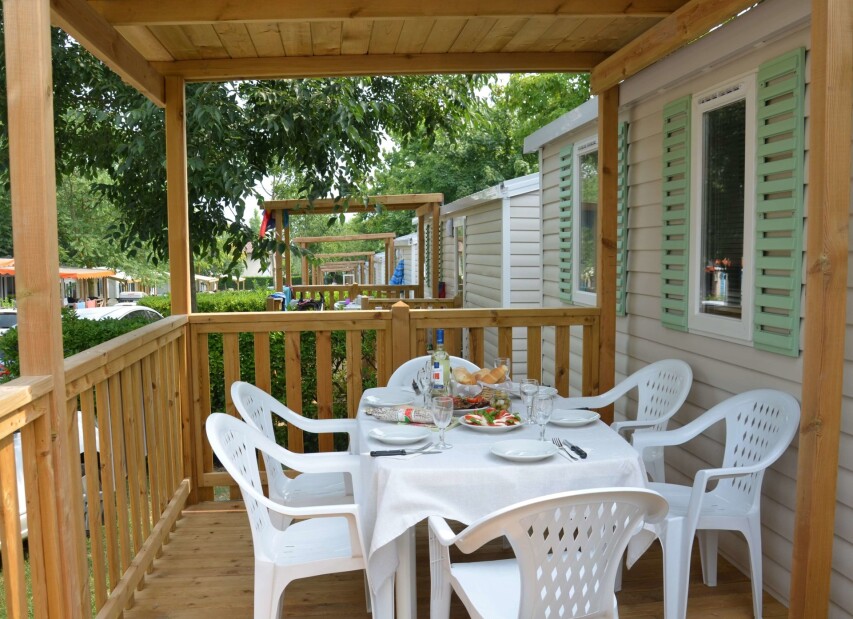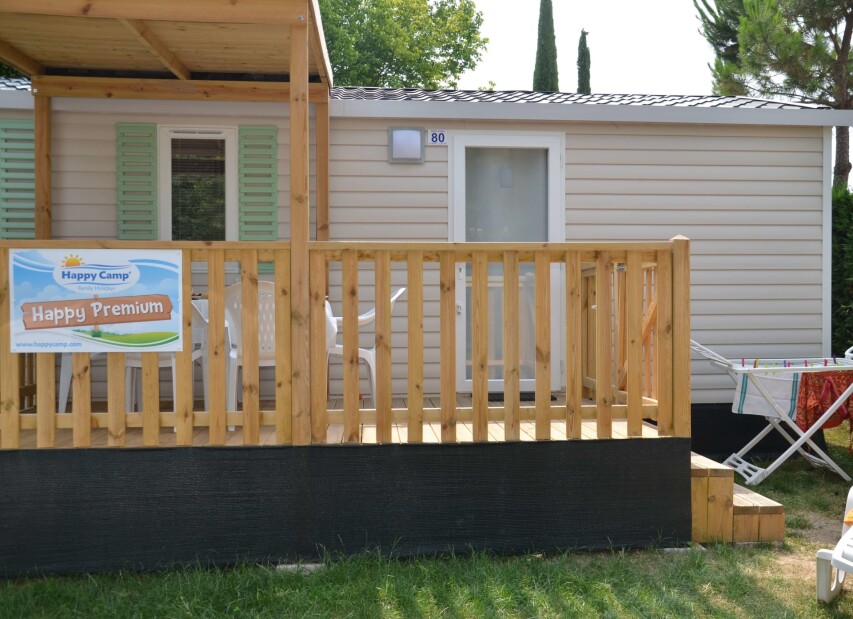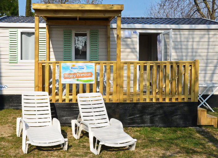 Mobilhomy jsou moderně vybavené, prostorné a světlé, všechny mají vlastní sociální zařízení, klimatizaci (za poplatek), barbecue nebo elektrický gril a venkovní posezení. Mobilhomy Superior mají navíc druhé sociální zařízení, fén, mikrovlnnou troubu a závěsné křeslo na terase. Pro každé ubytování je vyhrazeno jedno parkovací místo.
