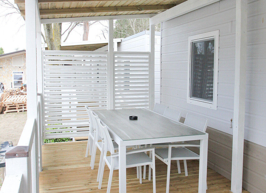 přízemí, terasa, dřevěná, částečně krytá, klimatizace volitelně, na vyžádání, 5 €/den, lednice, samostatný mrazák, sprcha, (sprchový kout), zahradní nábytek, gril / barbecue, nebo malý elektrický gril, parkovací místo, 2. parkovací místo, na vyžádání, 5 €/den, nástupní dny v období do 03.07. a od 06.09. kdykoli, 04.07. - 05.09. středa, sobota, min. pobyt v období do 25.04. a 03.05. - 23.05. a 06.06. - 04.07. a od 05.09. min. 3 noci, 25.04. - 03.05. a 23.05. - 06.06. a 04.07. - 05.09. min. 7 nocí, příjezd od 16:00 do 20:00, odjezd od 08:00 do 10:00