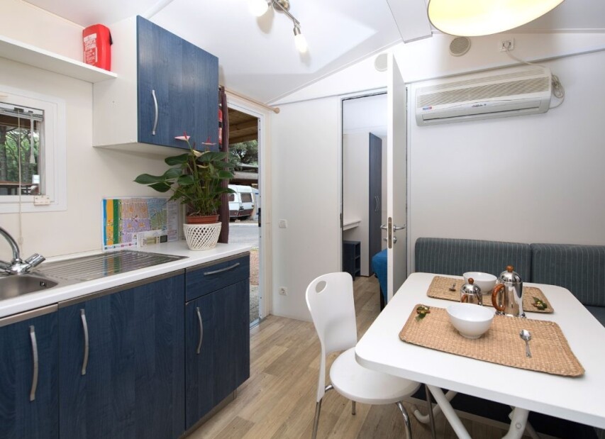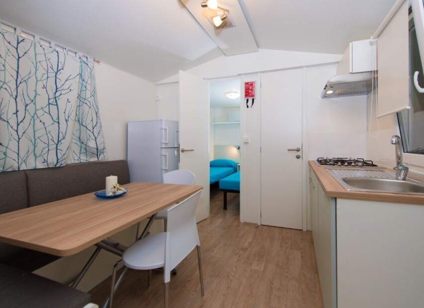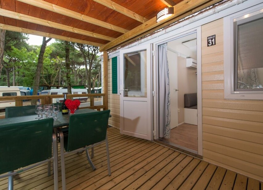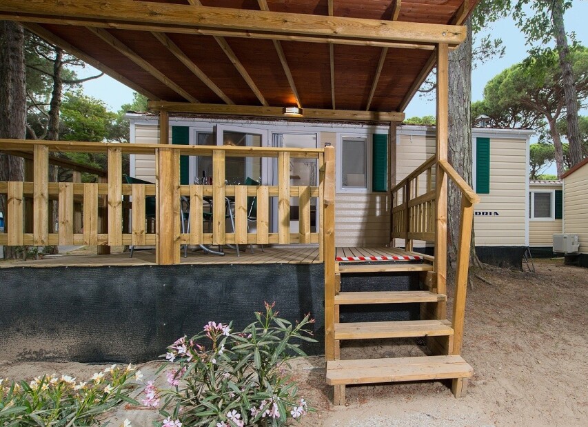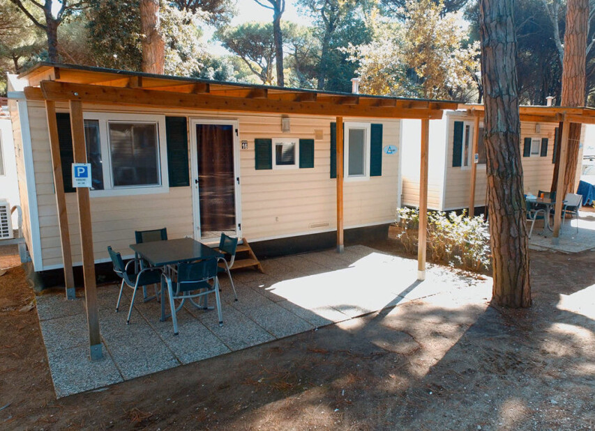 Mobilhomy jsou pěkně a funkčně vybavené, mají vlastní sociální zařízení (některé typy dvojí), fén (typ Mimosa a Evo Green), klimatizaci, topení, TV/SAT a mikrovlnnou troubu (obojí mimo typ Viola a Giglio), myčku (pouze typ Evo Green) a kryté venkovní posezení. Pro každý mobilhome je vyhrazeno jedno parkovací místo. Mobilhome Space je bezbariérový, mobilhome Rosa Comfort má oproti typu Rosa druhé sociální zařízení.