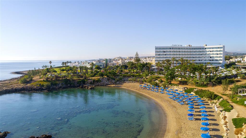 Crystal Springs Beach hotel sa nachádza priamo pri pláži na okraji obľúbeného strediska Protaras. Obklopuje ho krásna udržiavaná záhrada a pláž v zálive Vrisoudia je ideálnym miestom na pokojnú dovolenku. Rušnejšie centrum Protarasu je vzdialené cca 2 km.