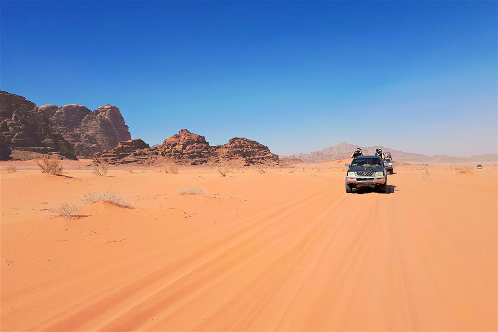 Z Wadi Musa, mesta v tesnej blízkosti Petry, sa presunieme (cca 1,5 hod.) na najjužnejší bod našej cesty po stopách Mojžiša, do údolia Wadi Rum s nádhernou púštnou scenériou. Práve tu, v období prvej svetovej vojny pôsobil aj britský vojak, cestovateľ a arabista T. E. Lawrence, ktorého príbeh poznáte z knihy a filmu Lawrence z Arábie. Pozrite si film a budete toto miesto spoznávať. Wadi Rum prekvapí svojou farebnosťou, bizarnými skalnými útvarmi, ale aj petroglyfmi, ukrytými na skalách či v kaňonoch a obrovitánske pieskové duny. Pripomína vám táto púšť Mars? Nie ste ďaleko od pravdy, práve tu totiž simulujú jeho podmienky a aj film Mars sa natáčal práve v týchto končinách. Povozíme sa na jeepoch 4x4 po púšti a navštívime pôvodných obyvateľov krutej púšte - Beduínov. Dáte si beduínsky čajík v príbytku nomádov púšte? Okrem dobrodružnej cesty džípom bude čas na vozenie sa na ťave. Na okolí nie sú pieskovce, ale granitové nádherné hory. Saudská Arábia je tu za rohom. Ďalšie dobrodružstvo a lá CK – sandboardovanie na obrovskej pieskovej dune. Vyskúšate? Po celom dni na púšti vyrážame púštnou diaľnicou k biblickej hore NEBO, kde je pochovaný prorok Mojžiš. 40 rokov putovania z Egypta po púšti ho priviedlo priamo sem, kde zahliadol vytúženú Zasľúbenú zem. Viete, prečo mu nebolo umožnené do nej vkročiť? Vyhliadka na zem zasľúbenú z hory Nebo. Uvidíme aj ďalekú Olivovú horu? Opálení opúšťame horu Nebo a prichádzame na najnižšie položené miesto našej planéty k Mŕtvemu moru. Doprajte si vyššiu úroveň ubytovania v hoteli Kempinski Ishtar a zažite nevídaný luxus na brehu Mŕtveho mora. Nocľah pri Mŕtvom mori.