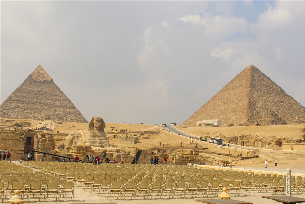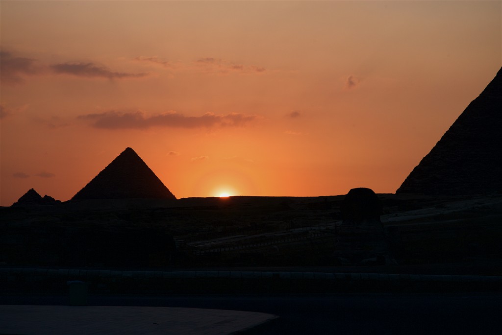 „Pyramídovú“ časť dňa končíme pri najznámejších pyramídach v Gíze, kde máme taktiež rozsiahlejší program. Vyvezieme sa dozadu na vyhliadku, slnko svieti spoza nášho chrbta a osvetľuje Cheopsovu (Chufuovu), Chefrénovu (Rachefovu) a Menkaureho pyramídu pod nami. Naživo vidíme (naše smartfóny majú kompas), že všetky stavby majú svoje steny dokonale orientované na svetové strany: sever, juh, východ a západ. Viete koľko pyramíd je v Gíze? Tri? Nie, je ich až 9! Dotkneme sa najvyššej pyramídy sveta, dôkladne si ju vychutnáme a povieme si o nej viac. Ide o jediný staroveký div sveta, ktorý sa dochoval do súčasnosti a pritom je tým najstarším. Vedecké závery, ale aj hypotézy D. Melchizedeka o vesmírnych elektrárňach. Každopádne aj fyzikálny chemik zo SAV bude pri týchto kolosoch, ktoré boli 3800 rokov (až do výstavby gotických katedrál) najvyššími stavbami planéty niečo cítiť. Záver bude patriť sfinge, úžasnej soche, ktorá Vás prekvapí svojou veľkosťou. Pozrieme sa jej z očí do očí? Kto vydrží jej pohľad? Aký je jej príbeh? Opäť sem prídeme pri ideálnom svetle a Vaše fotografie budú tými najlepšími. Vy, sfinga a za ňou najvyššia pyramída sveta. Krásny deň ukončíme v reštaurácii kde máme rezervovaný stôl a pozeráme sa na západ slnka nad najznámejšími pyramídami sveta. Výborné jedlo, ktoré ocenia aj vegáni (baba ghanoush, humus, tahina či molokhia) a pohľad na ktorý nikdy nezabudnete. Čaká nás noc strávená v lôžkovom vlaku, ktorý nás vezme naprieč celou krajinou. Odvezieme sa 1.triedou a teda najlepším možným spojom aký na tejto trase existuje! V kupé máte komfort, dostanete večeru aj raňajky s kávou alebo čajom a užijeme si príjemný oddych aj noc. Ešte stále diskutujeme o tom čo sme dnes zažili. Vedeli ste, že najdlhšie žijúci a vládnuci faraón vládol 90 rokov, volal sa Pepi II. a zomrel ako 106-ročný?