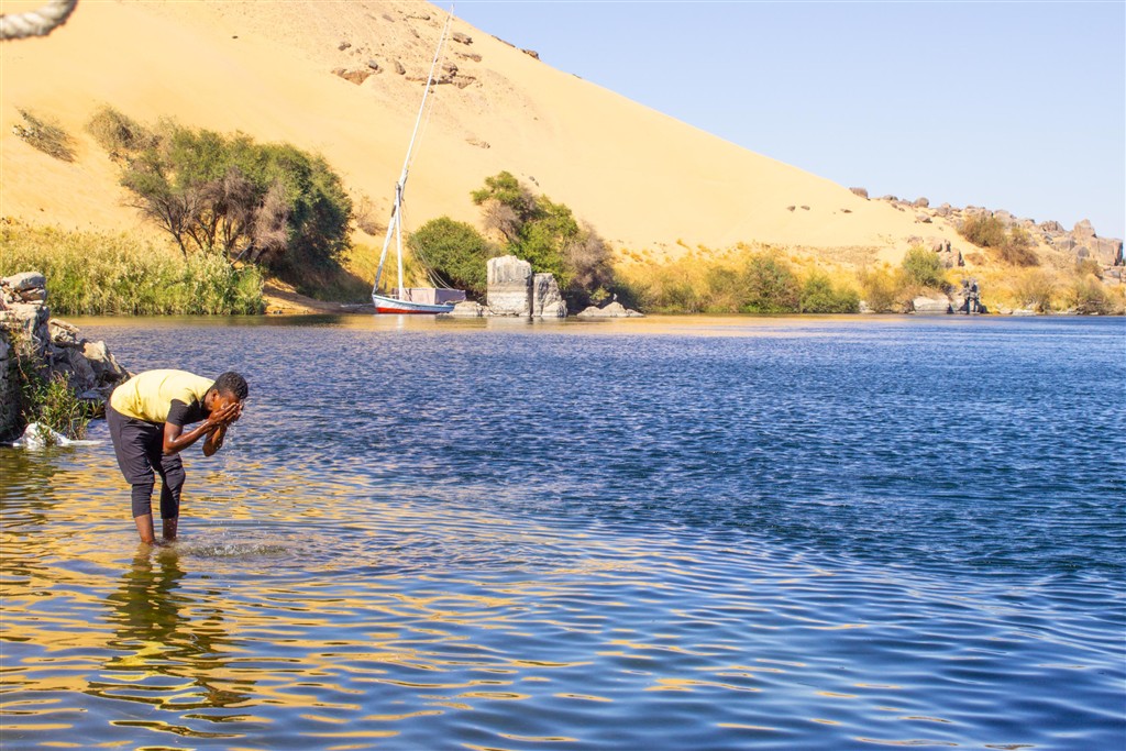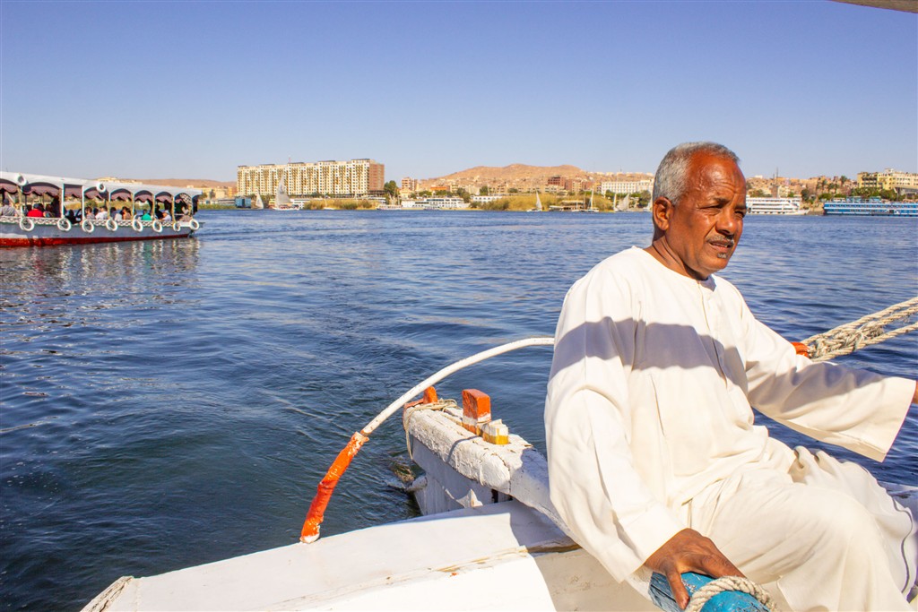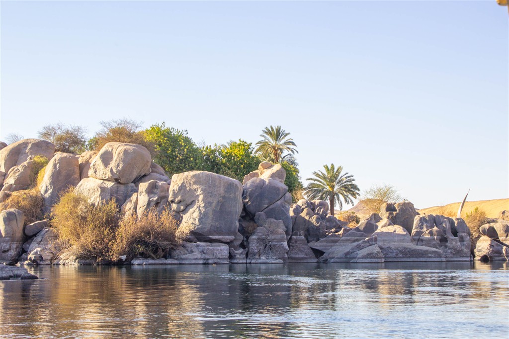 Najlepšie čierne korenie, šafran, kardamón, karí, zaatar, čaj s mentolom, loptičky s indickými ďatľami (tamer hindi), ktorý voláme tamarind. Desiatky druhov sladučkých datlí a úrovní ibišteka od výborného až po ten najlepší na svete. Ochutnáte osviežujúci nápoj karkadé, ktorý z ibišteka vyrábajú? Na obed si dáme košarí, čo je egyptské národné jedlo. Stretneme sa na streche nášho hotela s úžasným výhľadom na Níl a hrobky na druhej strane rieky. Košarí je úžasne chutné a pozostáva zo strukovín, ako cícer, šošovica, ošmahnutej cibuľky, čerstvej rajčinovej omáčky, cesnakového octu a viacerých druhov cestovín. Navyše si môžete pridať čili, ocot či cesnakovú pastu. Dáte si po výnimočnom obede šišu s výhľadom do nekonečna? Po rieke dnes už turisti jazdia väčšinou motorovými loďami, ale my sme prenajali tradičnú feluku, ktorou sa tu jazdilo zrejme ešte za čias faraónov. Vytiahneme obrovské biele plachty a vyrazíme proti prúdu na plavbu až ku prvému Nílskemu kataraktu. Toto je Níl, najdlhšia rieka sveta, kde s CK hľadáme miesto jej vzniku na zájazde Burundi, Rwanda, Uganda a na tomto zájazde sme boli na miestach jej delty. Teraz sa plavíme po miestach, kde končila ríša faraónov. Všade naokolo sú obrovské žulové kamene, vystupujúce z vody. Mnohé z nich pripomínajú kúpajúce sa slony. Aj preto sa ostrov okolo ktorého sa práve plavíme právom volá Elefantína (Sloní ostrov).