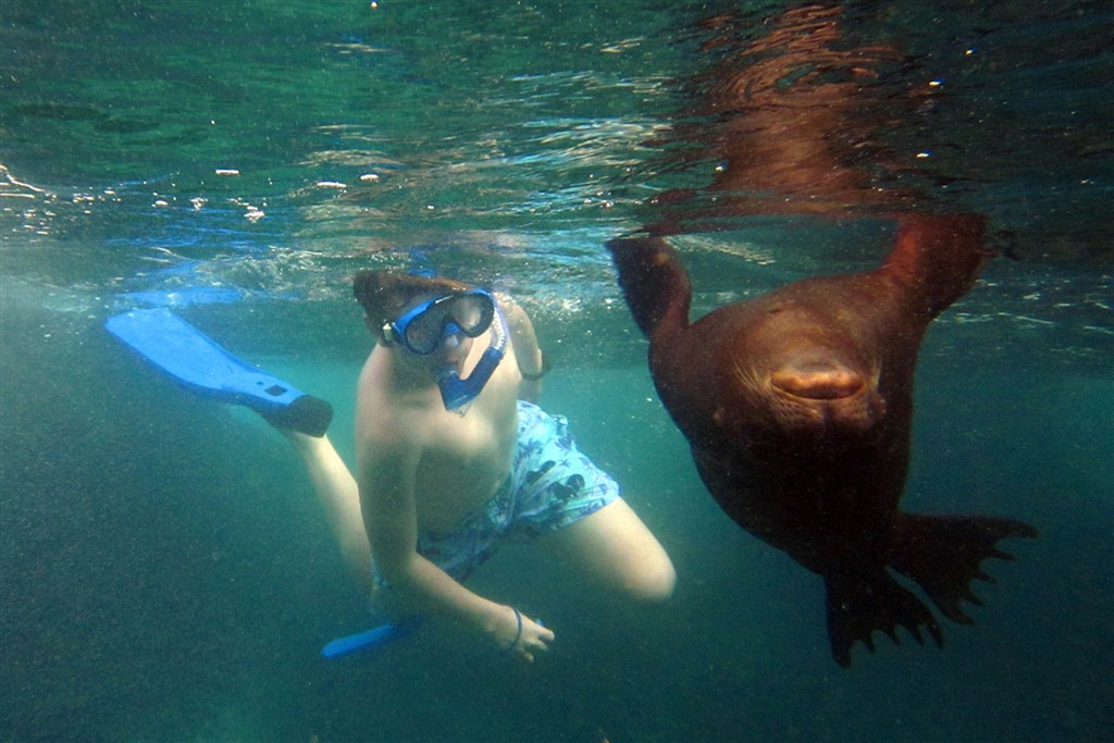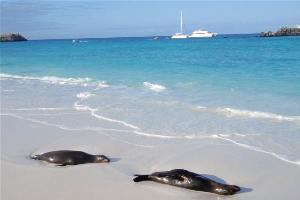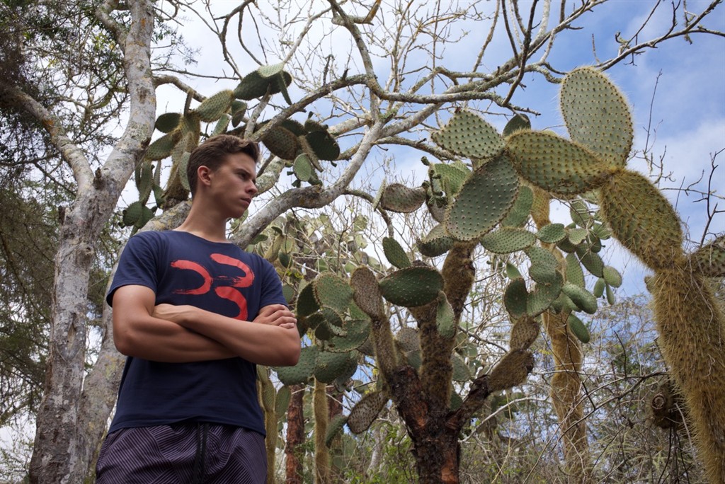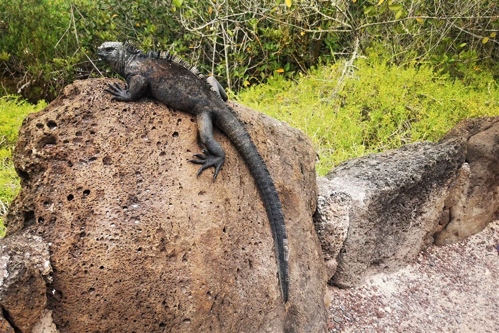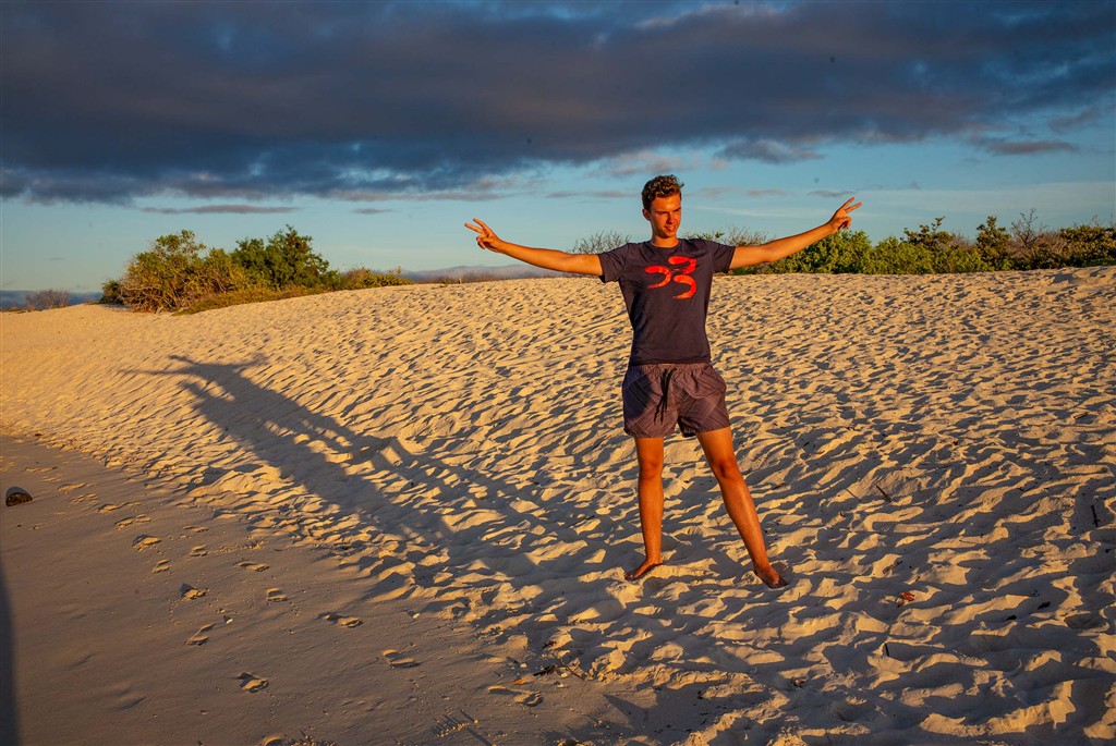 Po raňajkách ihneď vyrážame do Darwinovho centra. Kamenným chodníkom medzi stovkami obrovských kaktusov prichádzame na miesto, ktoré nás uvedie do problematiky ostrovov. Prečo sú Galapágy také známe? Život Charlesa Darwina a čo ho na Galapágoch uchvátilo. Kde žila najslávnejšia korytnačka sveta Osamelý George? Naozaj mal 150 rokov? Dnes chceme vidieť minimálne tucet korytnačiek a zároveň viac druhov. Chceme si pozrieť kostru veľryby a celé múzeum v Darwinovom centre. Chceme vidieť uškatce, loviace pelikány a potom skočiť na pláž. Hodinová prechádzka po najkrajšej pláži ostrova a zrejme aj celých Galapág. Bielučký piesok a modré more..no čo je absolútne unikátne, tak v mori môžete vidieť plávať jaštery – leguány morské. Keď Charles Darwin uvidel plávajúce leguány a všimol si že chvost týchto prajašterov nemá okrúhly priemer ako je bežné, ale je plochý aby sa ním dalo manipulovať ako kormidlom. Keď si všimol, že tieto leguány nozdrami vysmrkujú prebytočnú soľ, ktorú do svojho tela dostali tým, že sa živia morskými riasami. Keď si všimol, že majú silné pazúry prispôsobené tomu, aby sa vedeli zachytiť pri plávaní na skalu. Že na rozdiel od farebných suchozemských leguánov sú tieto čierne, prispôsobené prostrediu kde sa pohybujú. … Doplo mu, že tieto zvieratá sa prispôsobili okolitým podmienkam, ktoré sú na Galapágoch unikátne. No keď to takto zreteľne vidieť na odľahlých Galapágoch, tak to musí platiť aj inde – dovolil si zauvažovať Darwin.