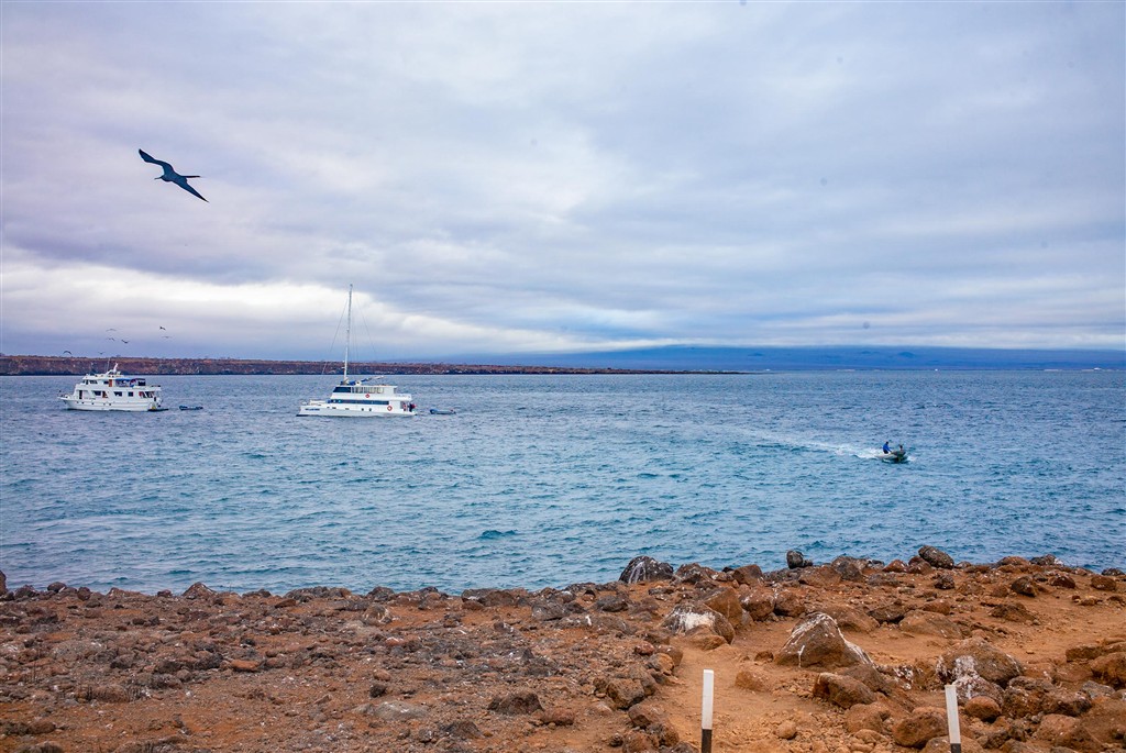Odlietame 1000 km do hĺbky Tichého oceánu. Vzdialenosť, ktorú iné živočíchy nevedeli prekonať a preto Galapágy ostali takým výnimočným miestom. Na novom letisku v Quito, vybavíme vstupnú kartu na Galapágy, kartu INGALA. Vybavenie aj poplatok je už v základnej cene zájazdu. Následne náš partner zachekuje batožinu, lebo toto je v prípade Galapág zložitejšie - musíte prejsť špeciálnou kontrolou a dostanete špeciálnu svorku, aby ste batožinu už nemohli otvoriť. Na letisku kupujeme posledné fľaše rumu (za nižšiu cenu) a odlietame. 6 tisíc metrov vysoké sopky vystriedajú nedozerné vody Tichého oceánu.