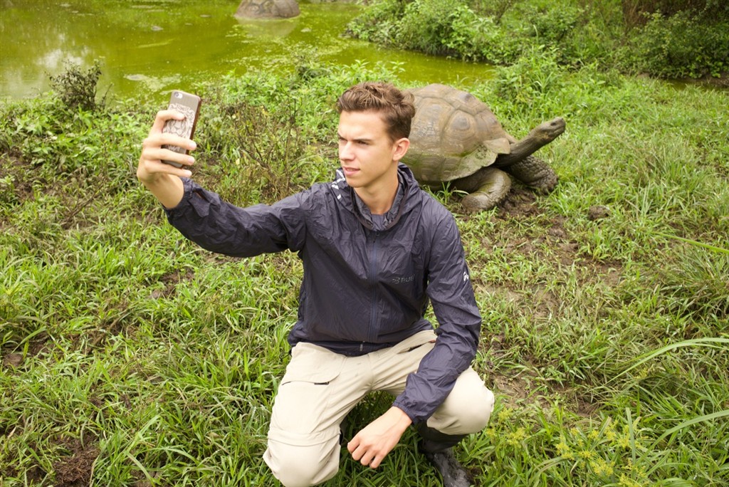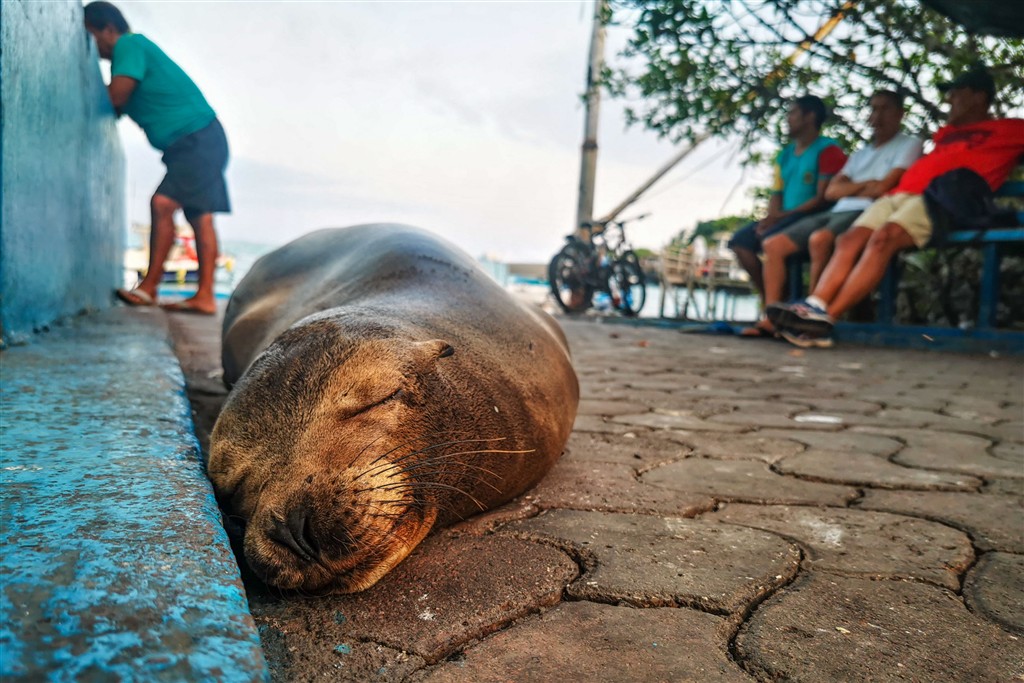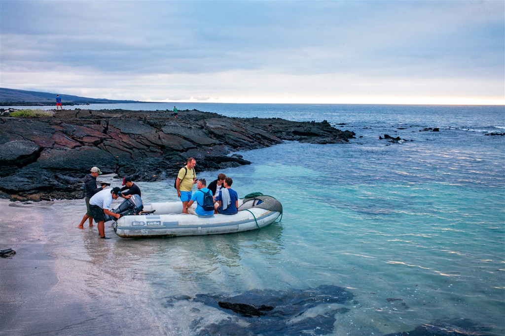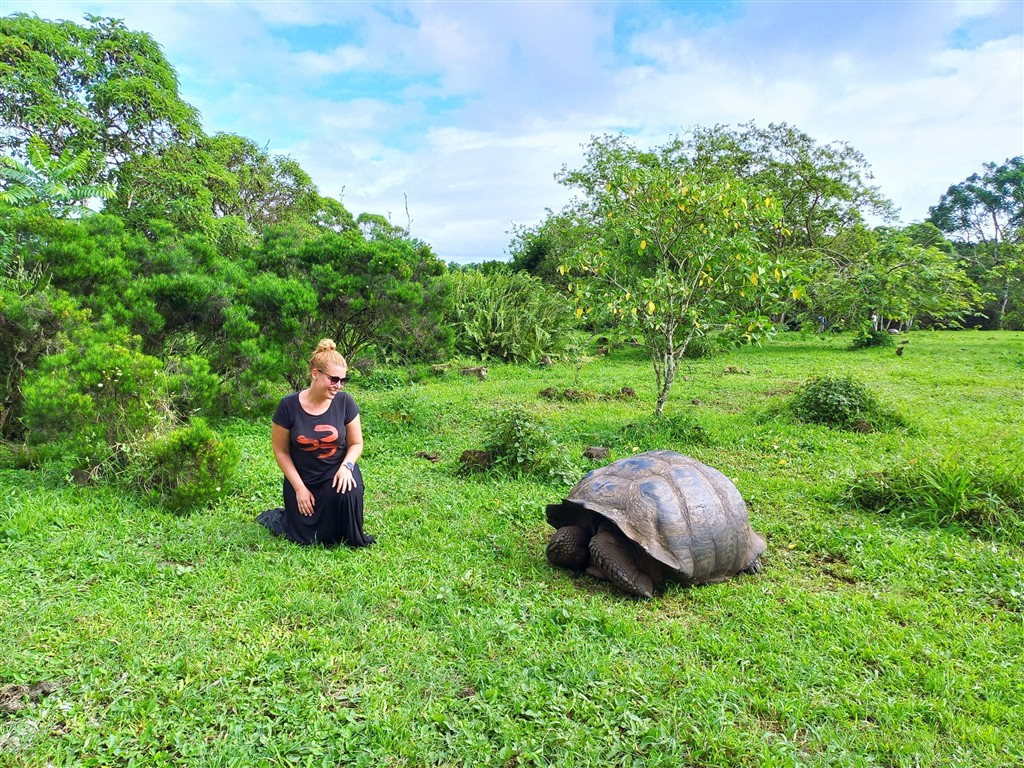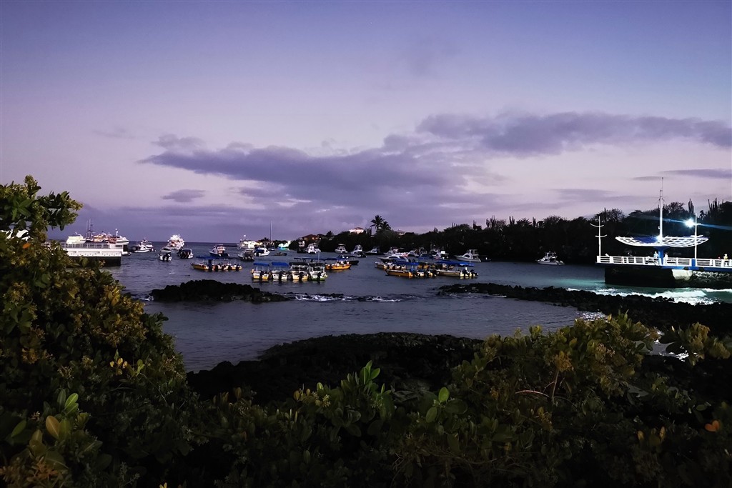 Pod nami sa z tmavomodrého oceánu vynorí čierny vulkanický ostrov Baltra a my pristávame. Psy nám oňuchajú batožinu, prejdeme zložitými colnými procedúrami, zoznámime sa so zákonmi, ktoré budeme dodržiavať, aby sme unikátne prostredie zachovali aj pre ďalšie generácie. Vydáme sa expedičným autobusom krížom cez Baltru (15minút). Nasadneme na domorodú lodičku a cez kanál Itabaca sa preplavíme na hlavný ostrov Santa Cruz a aj toto je super zážitok. Takýto transfer z letiska je vskutku unikátny a je hneď jasné, že sme na unikátnom mieste. Nasadneme na naše prenajaté džípy, batožinu naložíme dozadu a naši šoféri po prekvapivo dobrých cestách stúpajú hore na sopku. Okolo nás je zrazu zeleň a my dávame pozor, aby sme nezrazili korytnačku obrovskú – na tomto ostrove sa ich nachádza najviac na celých Galapágoch. Následne po hodine zbehneme opäť dolu k moru a ubytujeme sa v našom hoteli v hlavnom meste ostrova v Puerto Ayora 5 minút od absolútneho centra. Naobedujeme sa v najlepšej reštaurácii mesta. Čerstvé ryby, ceviche, tamarindový džús či caipirinha. Večer sa prejdeme suvenírovými obchodíkmi, zastavíme v bare a nafotíme si z vtáčej perspektívy húf žralokov, ktorí lovia malé rybičky v nasvietenom prístave.