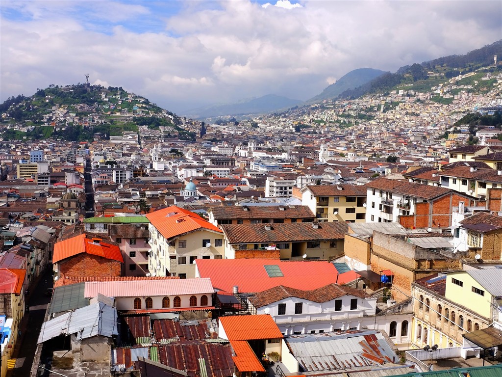 Odlet z Viedne. Prílet do Ekvádoru a hlavné mesto Quito. Mesto na úpätí sopky Pichincha vo výške 2 800 m n. m.