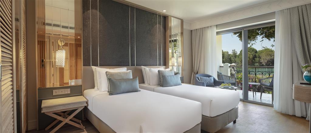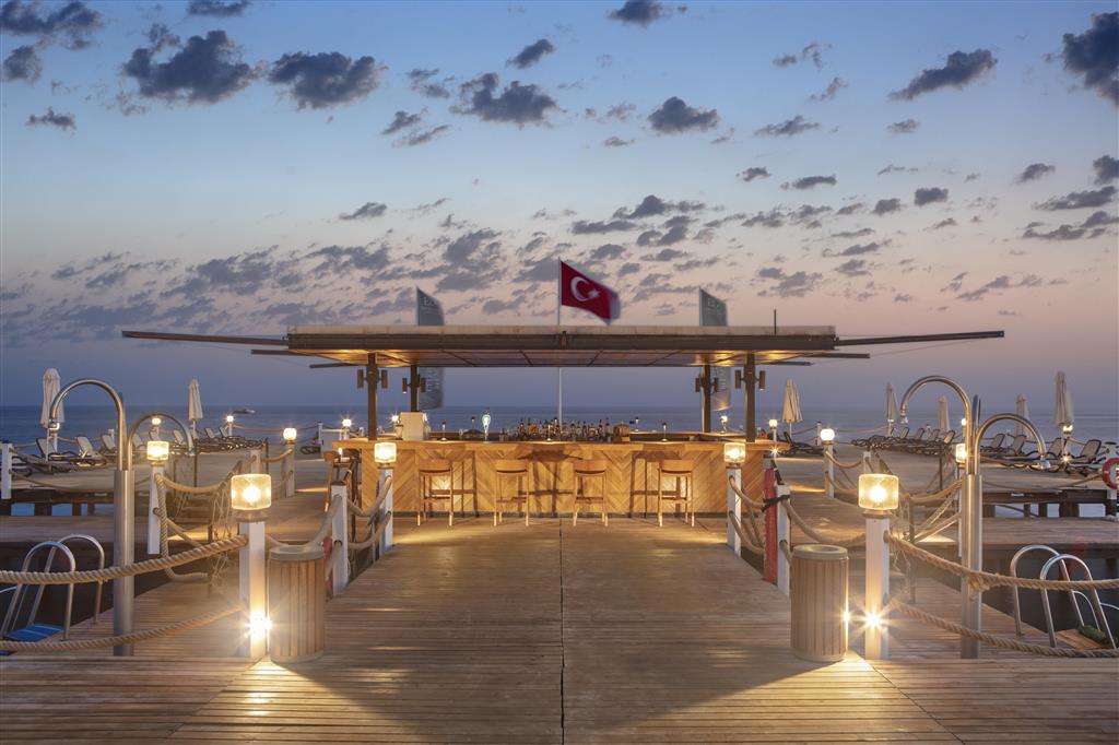 Hlavná hotelová budova a záhradné vily (areál 100 000 m2) priamo pri 250 m dlhej piesočnatej pláži, od centra Antalye cca 45 km. Medzinárodné letisko Antalya je vzdialené 33 km od hotela.