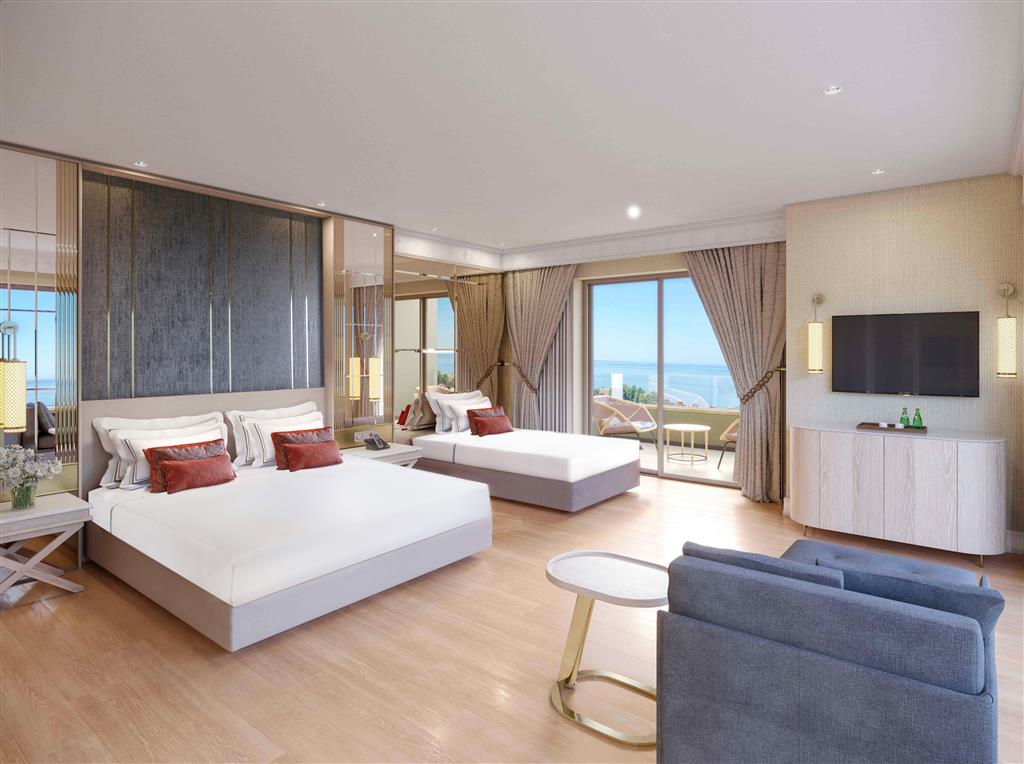 Izby: Dvojlôžková izba, Superior, Výhľad do záhrady, Hlavná budova: kúpeľňa/WC (sušic vlasov), centrálna klimatizácia, TV/sat., telefón, minibar, trezor (zadarmo), Wifi (zadarmo), balkón/terasa (Superior room) Ostatné typy izieb (pokiaľ nie je uvedené inak, majú izby vyššie uvedené vybavenie) Dvojlôžková izba, Superior, Hlavná budova, Výhľad na more (Superior room) Grand Suita, Hlavná budova, Výhľad na more: priestrannejšia izba s obývacou časťou, výhľad na more (Grand Superior Sea View) Rodinná izba, Duplex, Hlavná budova: poschodová izba (Family Duplex) Rodinná izba, Duplex, Hlavná budova, Výhľad na more: poschodová izba, výhľad na more (Family Duplex) Family Suita, Rohová, Hlavná budova, Výhľad na more: 2 spálne (Family Corner room) Dvojlôžková izba, Záhrada, Výhľad do záhrady: umiestnená vo vedľajších budovách v záhrade (Lake House Garden View) Dvojlôžková izba, Záhrada, Výhľad na bazén: umiestnená vo vedľajších budovách v záhrade, výhľad na bazén (Lake House Pool View) Dvojlôžková izba, Záhrada, Swim-Up: umiestnená vo vedľajších budovách v záhrade, priamy vstup do bazéna (Lake House Swim Up) Rodinná izba, Záhrada: umiestnená vo vedľajších budovách v záhrade, 2 spálne (Lake House Family Suite) Rodinná izba, Záhrada, Výhľad na bazén: umiestnený vo vedľajších budovách v záhrade, 2 spálne, výhľad na bazén (Lake House Family Room) Rodinná izba, Záhrada, Swim-Up: umiestnená vo vedľajších budovách v záhrade, 2 spálne, priamy vstup do bazéna (Lake House Swim Up Suite) 9 izieb prispôsobených pre handicapovaných klientov.