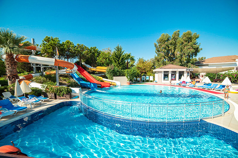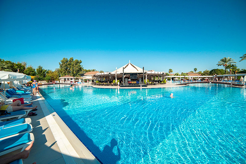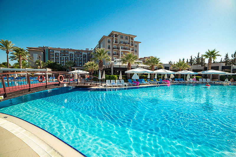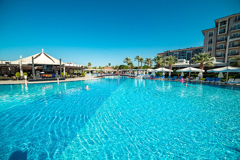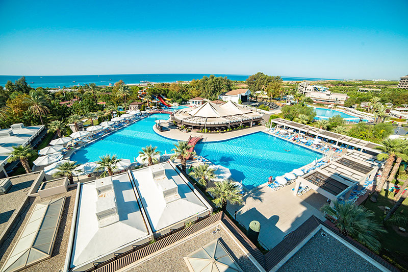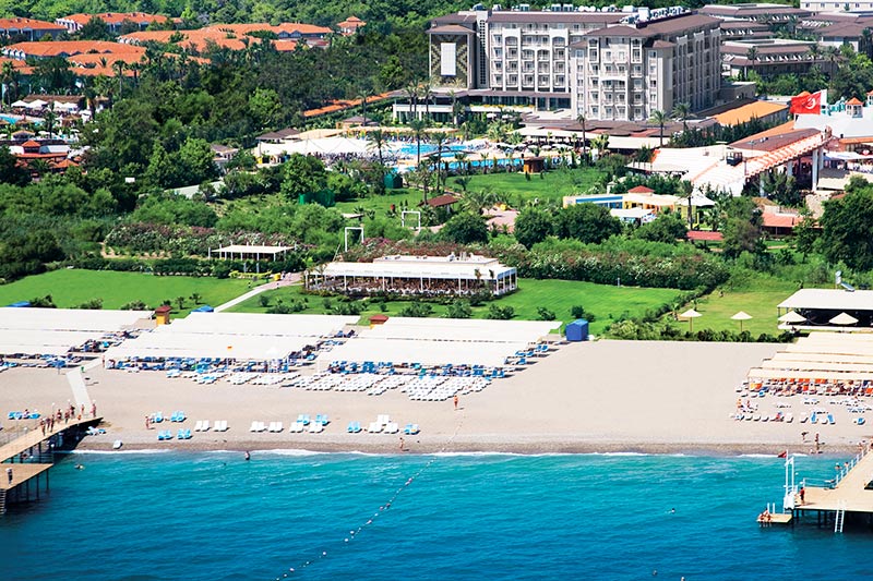 hlavná reštaurácia • nočné bistro • turecká a la carte reštaurácia • čínska a la carte reštaurácia • mexická a la carte reštaurácia • talianska a la carte reštaurácia • a la carte reštaurácia s morskými plodmi • 2 snack bary • tradičné turecké placky gözleme • cukráreň • lobby bar • bar pri bazéne • bar na pláži • disco bar • diskotéka • nákupná pasáž • herňa • bezplatné Wi-Fi pripojenie • lekár na vyžiadanie • kaderníctvo • SPA centrum • vonkajší bazén • relaxačný bazén • vnútorný bazén • vonkajší detský bazén • vnútorný detský bazén • bazén so 4 šmýkačkami • detské ihrisko • miniklub s množstvom originálnych aktivít pre deti • tenisové kurty • fitnescentrum • pestré športové animácie • animačný tím Klub Leto v termíne 28.6. - 2.9.2026