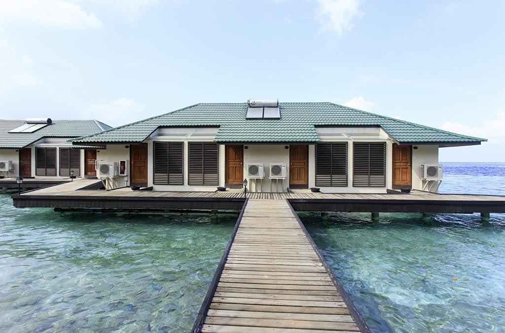 Vodný bungalov: nad vodou (bez prístupu do mora z terasy), TV/sat, vírivka