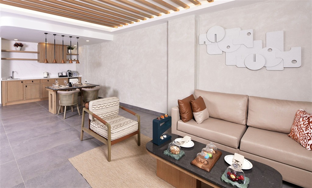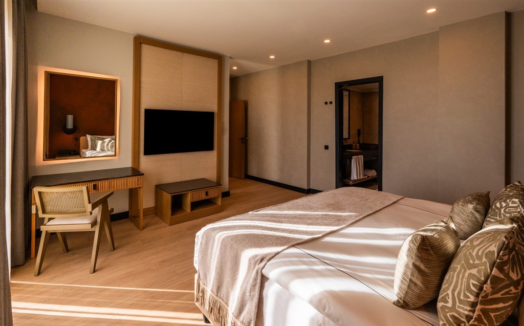 pohodlné a luxusné ubytovanie • moderne zariadené izby • klimatizácia • Wi-Fi • oddelená kúpeľňa a WC • šatník • sušič vlasov • telefón • TV • trezor • župan a papuče • žehlička a žehliaca doska • digitálna váha • balkón alebo terasa