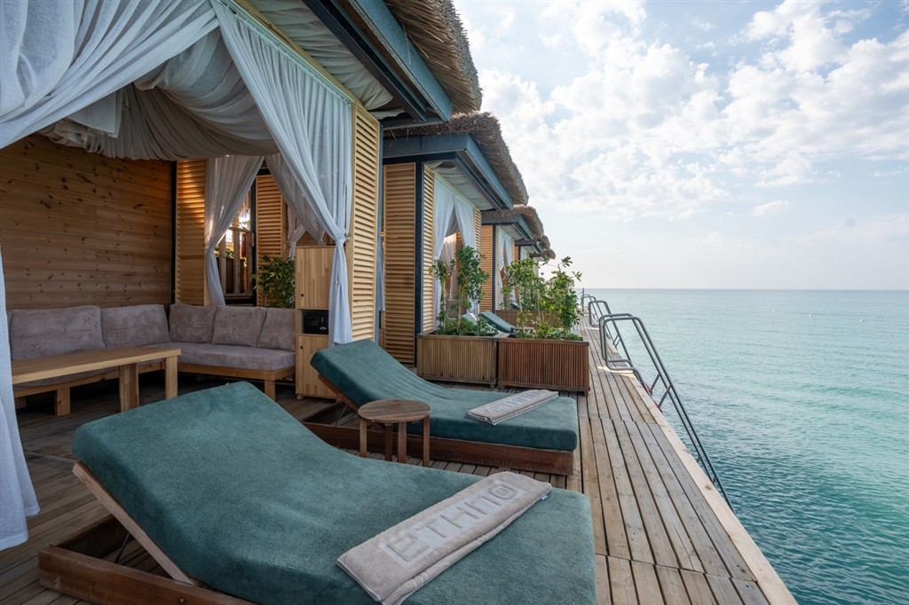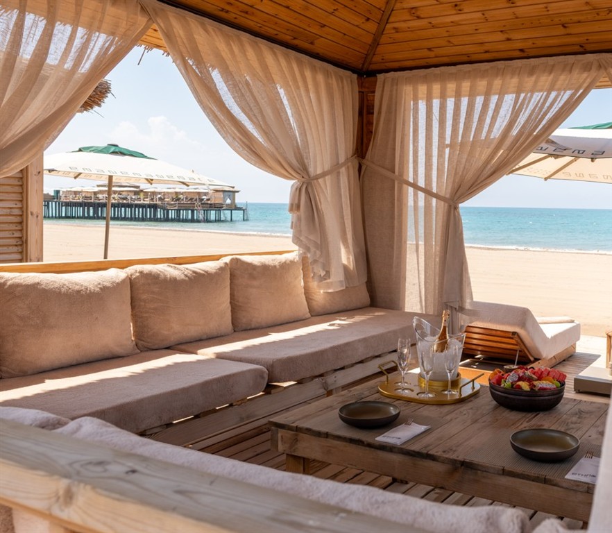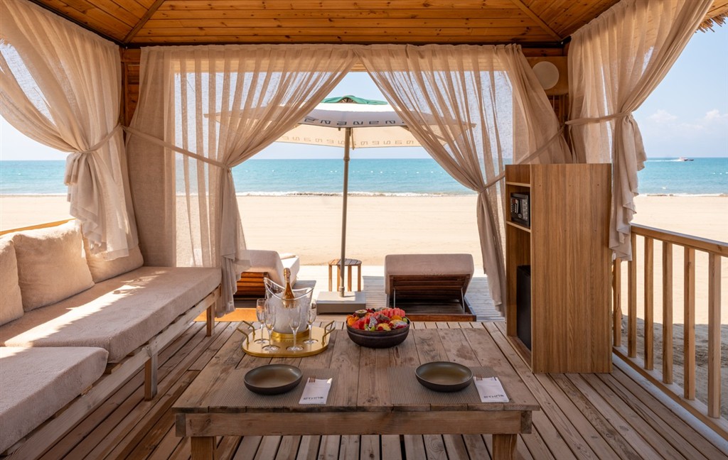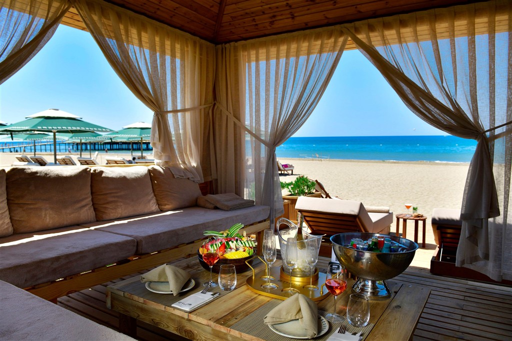 Pláž: súkromná pláž • jemný piesok • pohodlný a pozvoľný vstup do mora • slnečníky a ležadlá (zdarma) • cabany (za poplatok) • plážové osušky (zdarma) • vodné športy (za poplatok) • bar na pláži v rámci ultra all inclusive
