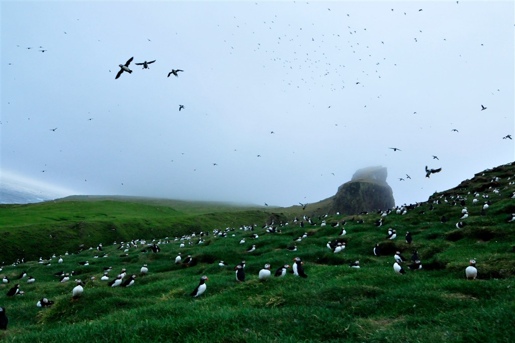Celodenný výlet na Mykines, prezývaný aj vtáčí ostrov, hniezdisko slávnych mníšikov bielobradých (puffin). Jedná sa o najznámejší z faerských ostrovov a my sem prichádzame v najvyššej sezóne. Neuveriteľný zážitok. Ráno vyrazíme do malého prístavu Sorvágur na ostrove Vágar odkiaľ nás trajekt za 45 minút prevezie na Mykines. Samotná plavba Atlantikom zo zeleného ostrova na ešte zelenší, je sama o sebe zážitkom. Po vylodení sa občerstvíme v jedinej dedinke, ktorú tu nájdete. V súčasnosti tu žije iba 14 stálych obyvateľov, my sa zastavíme v miestnej kaviarni, kde si pri konverzácií s miestnymi vychutnáme faerské špeciality v podobe výbornej rybacej polievky a domáceho koláča, ak pani majiteľka napiekla.