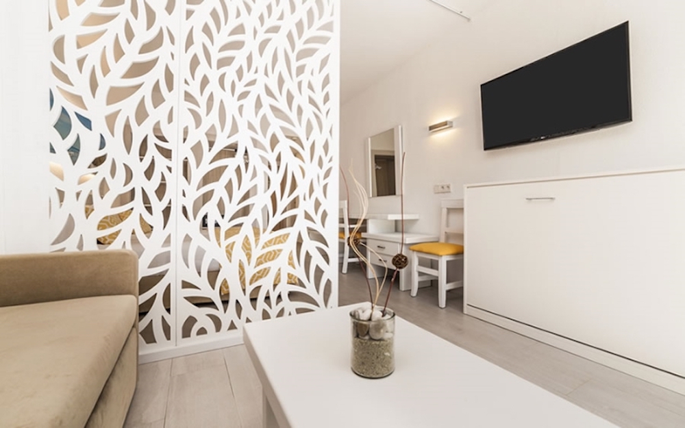 Typy izieb: dvojlôžkové izby, možnosť prístelky, dvojlôžkové izby orientované na morskú stranu, možnosť jednej prístelky, rodinné izby pre 4 osoby, jednolôžkové izby