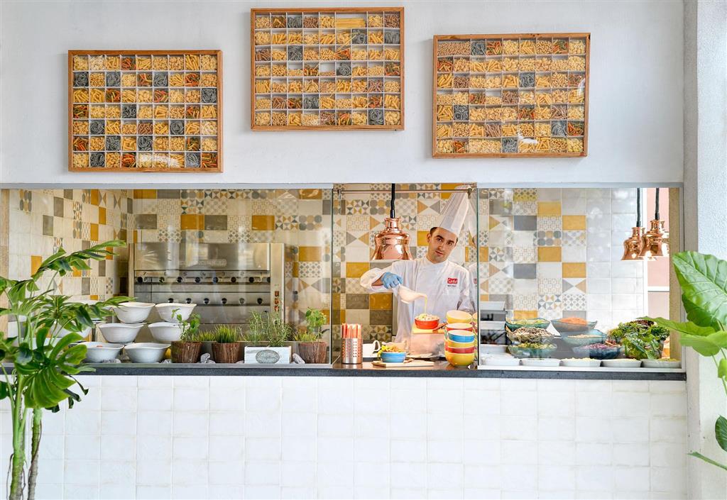 vstupná hala s recepciou s WiFi, lobby bar, hlavná reštaurácia, 3 á la carte reštaurácie, snack bar, vonkajší panoramatický bazén, bar pri bazéne, bar na pláži, sky bar, fitnes, tenis. Hotel ponúka na plážiležadlá a slnečník zadarmo.
