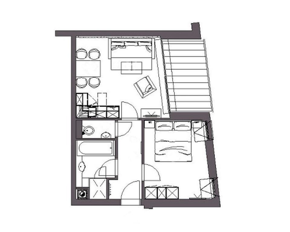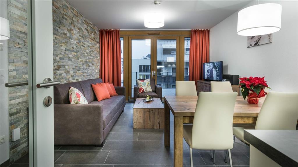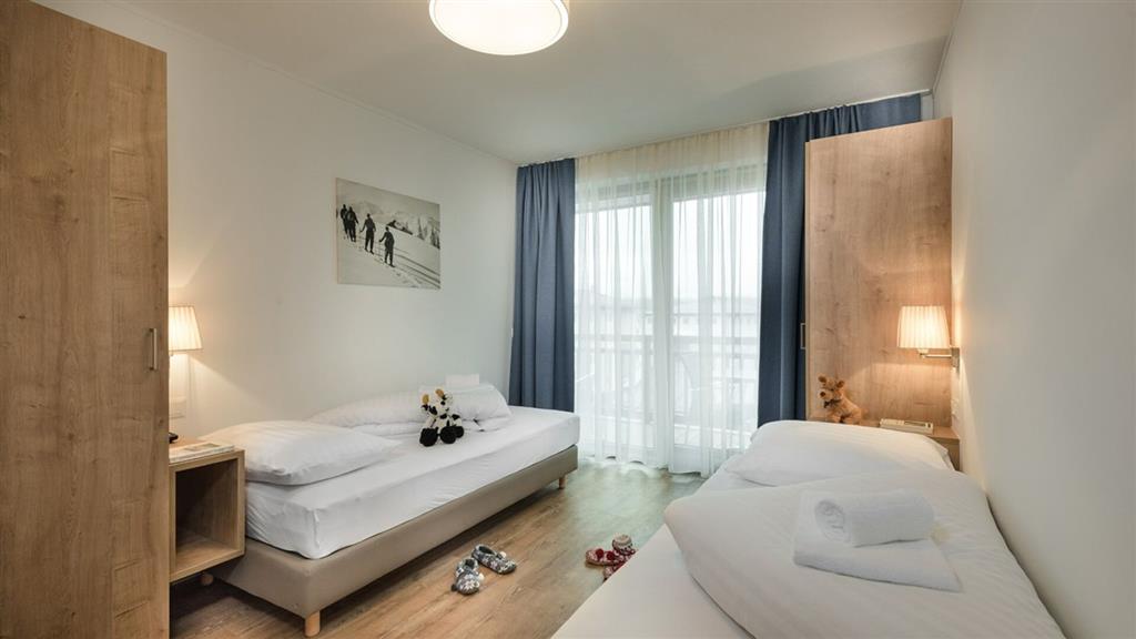 Apartmán o rozloze cca 40 m2 je určen pro 2–4 osoby. Disponuje ložnicí, vstupní halou s šatní skříní, koupelnou, balkonem nebo terasou. Maximální kapacita: 2 dospělí a 2 děti do 15,99 let.