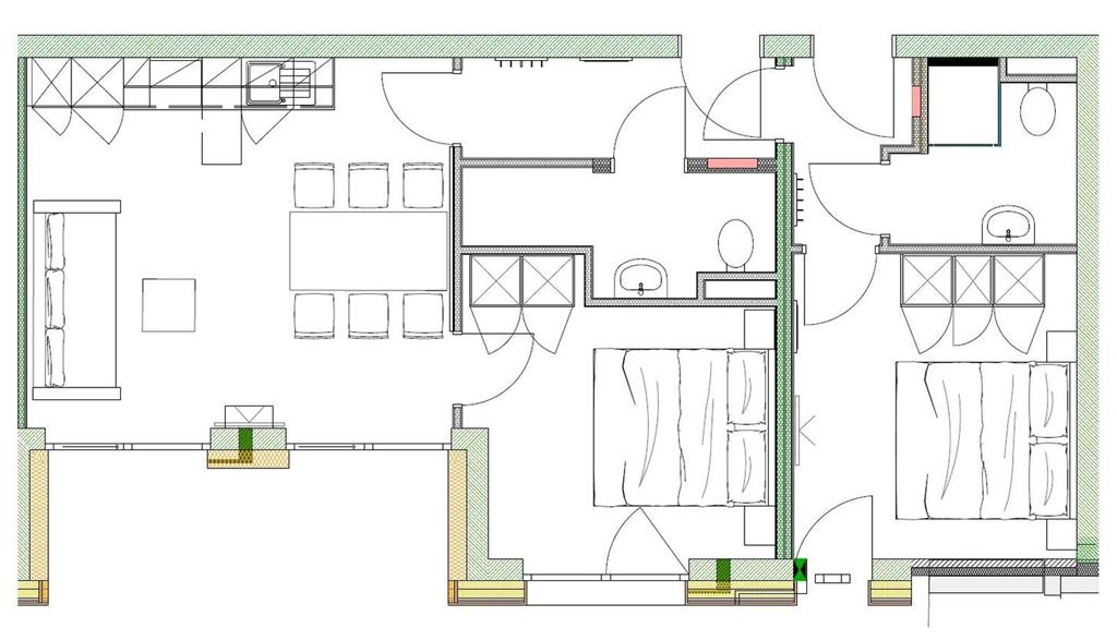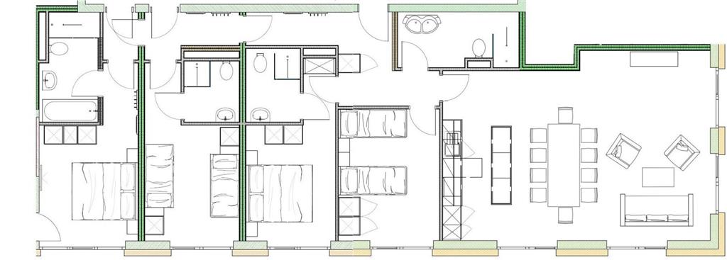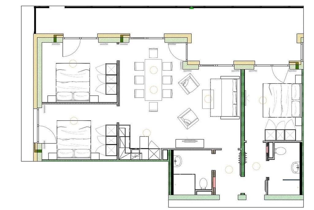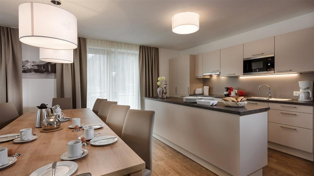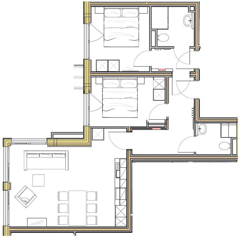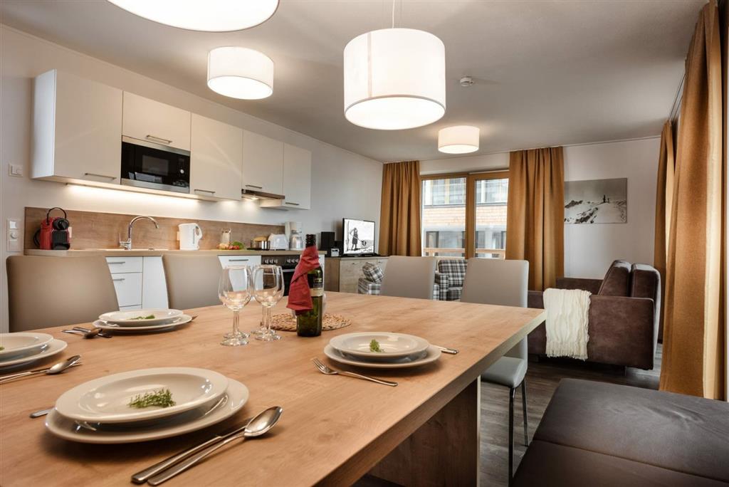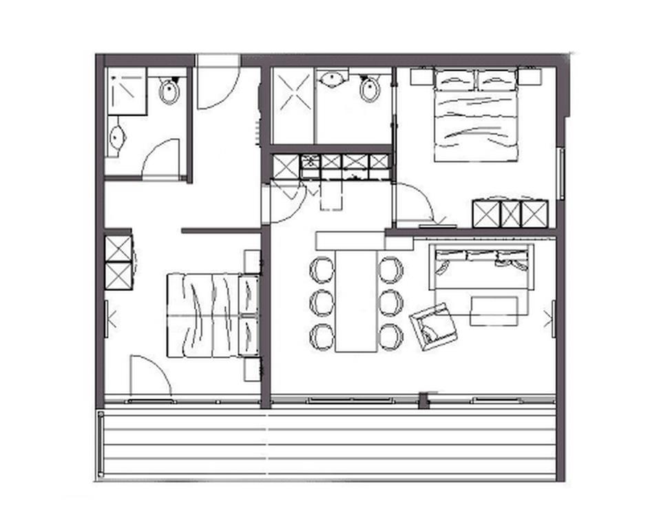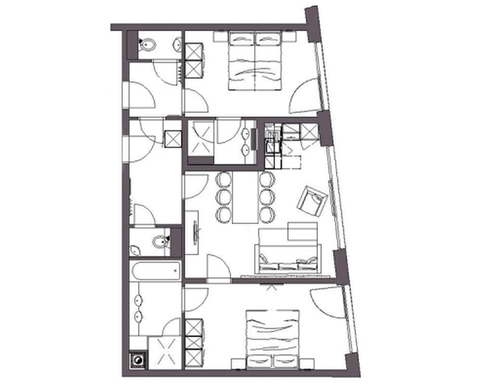 Apartmán o rozloze cca 134 m2 je určen pro 8–10 osob. Nabízí obývací pokoj, čtyři ložnice (2× dvoulůžková postel, 2× dvě samostatná lůžka), čtyři koupelny, vstupní halu s šatní skříní a terasu.