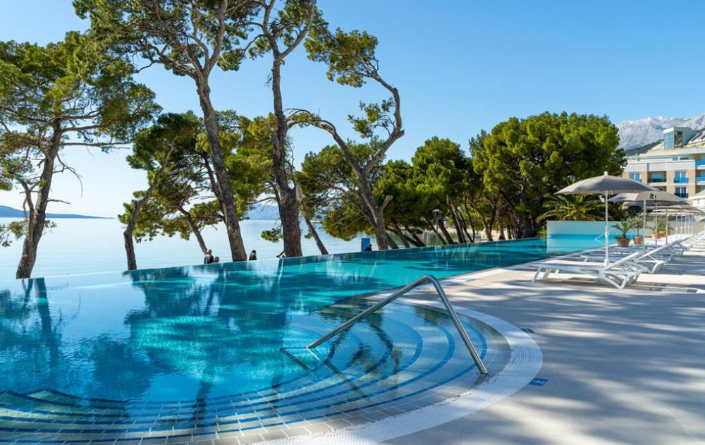 Tento krásný, zcela zrenovovaný hotel se nachází v docházkové vzdálenosti od centra města Makarska. U venkovního bazénu si můžete vychutnat jedinečné výhledy na křišťálově průzračné moře a okolní ostrovy, a to za denního světla, či při západu slunce. Hotel disponuje recepcí, lobby barem s bohatou nabídkou nápojů, restaurací, á la carte restaurací La Pentola Trattoria Italiana, venkovním snack barem u bazénu, konferenční místností, parkováním (za poplatek, omezená kapacita) a WiFi připojením v celém hotelu zdarma. Majitelé elektromobilů jistě ocení EV dobíjecí stanici. Dále můžete využít také hotelové wellness centrum, mezi jehož vybavení patří vnitřní vyhřívaný bazén se sladkou vodou, sauna, či posilovna (některé služby mohou být zpoplatněny, ceny dle aktualniho ceniku na recepci). Za poplatek lze sjednat masáže, kosmetické procedury, manikúru, pedikúru a další. Od 1. 5. 2026 bude nově otevřeno wellness SUN & SPA o rozloze cca 800 m2. Před hotelem se nachází infinity bazén s mořskou vodou a vyhřívaný dětský sladkovodní bazén pro děti s atrakcemi. U bazénu jsou k dispozici pro klienty zdarma lehátka a slunečníky, ručníky a převlékací kabinky.