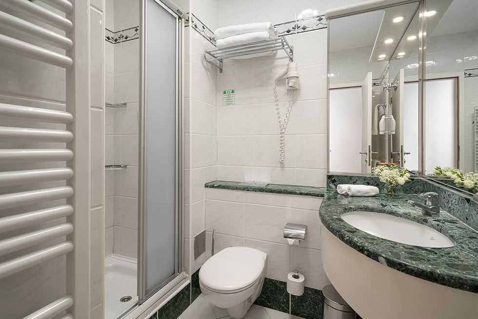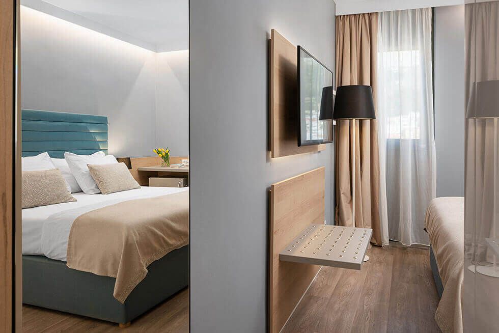 Pokoj o velikosti cca 17 m2 je vybaven vlastním sociálním zařízením, fénem, klimatizací, minibarem, SAT/TV, telefonem, trezorem a WiFi připojením.