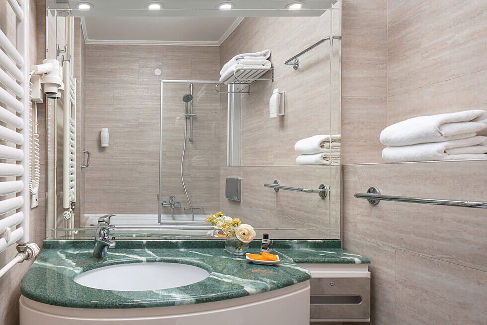Pokoj o velikosti cca 19–23 m2 je vybaven vlastním sociálním zařízením, fénem, klimatizací, minibarem, SAT/TV, telefonem, trezorem a WiFi připojením. Pokoj disponuje balkonem.