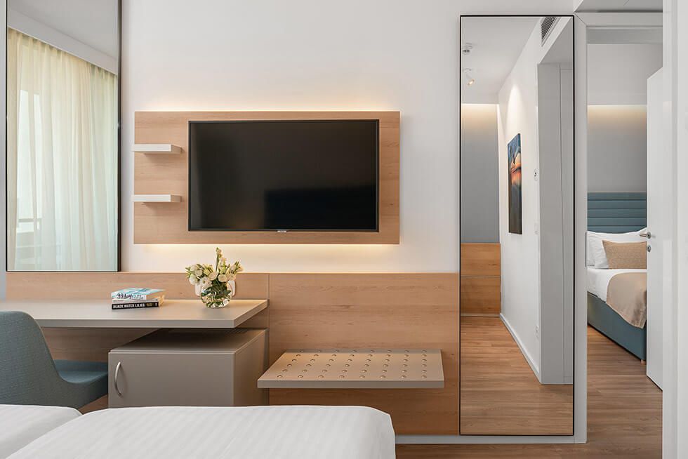 Pokoj o velikosti cca 36–50 m2 je vybaven dvěma koupelnami a dvěma ložnicemi, fénem, klimatizací, minibarem, SAT/TV, telefonem, trezorem a WiFi připojením. Pokoj disponuje balkonem. Maximální obsazení pokoje jsou 2 dospělé osoby a 3 děti do 13,99 let.