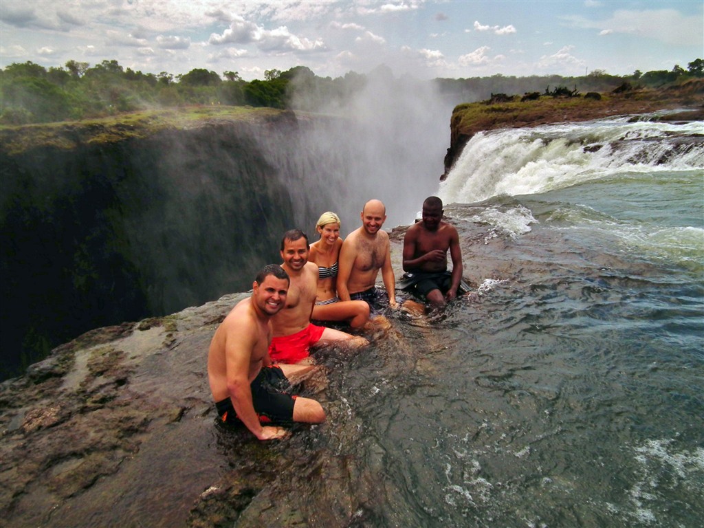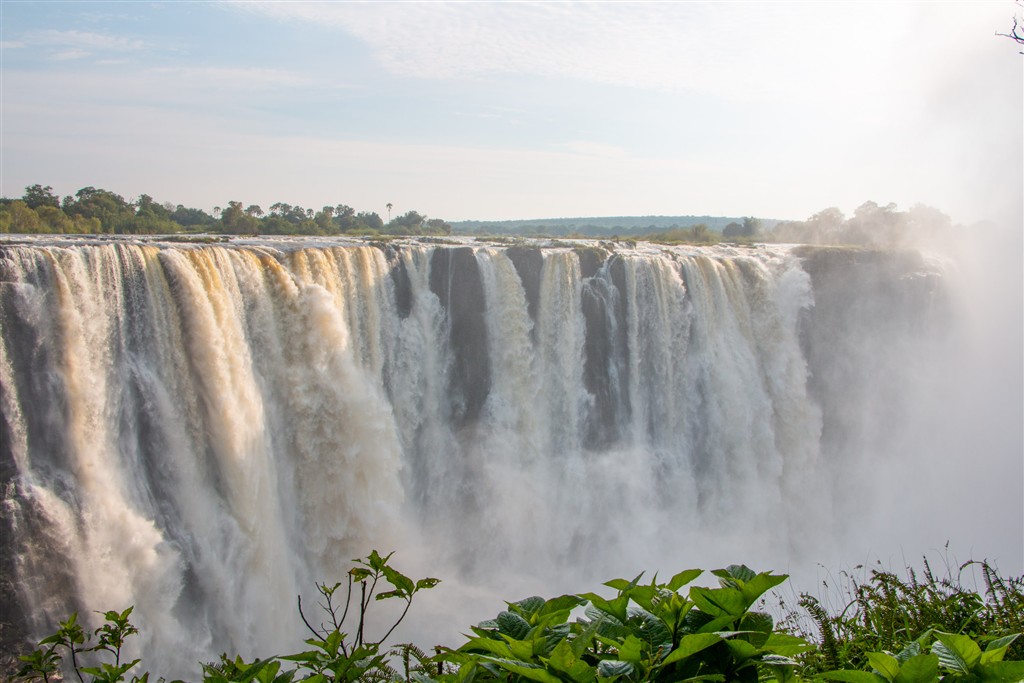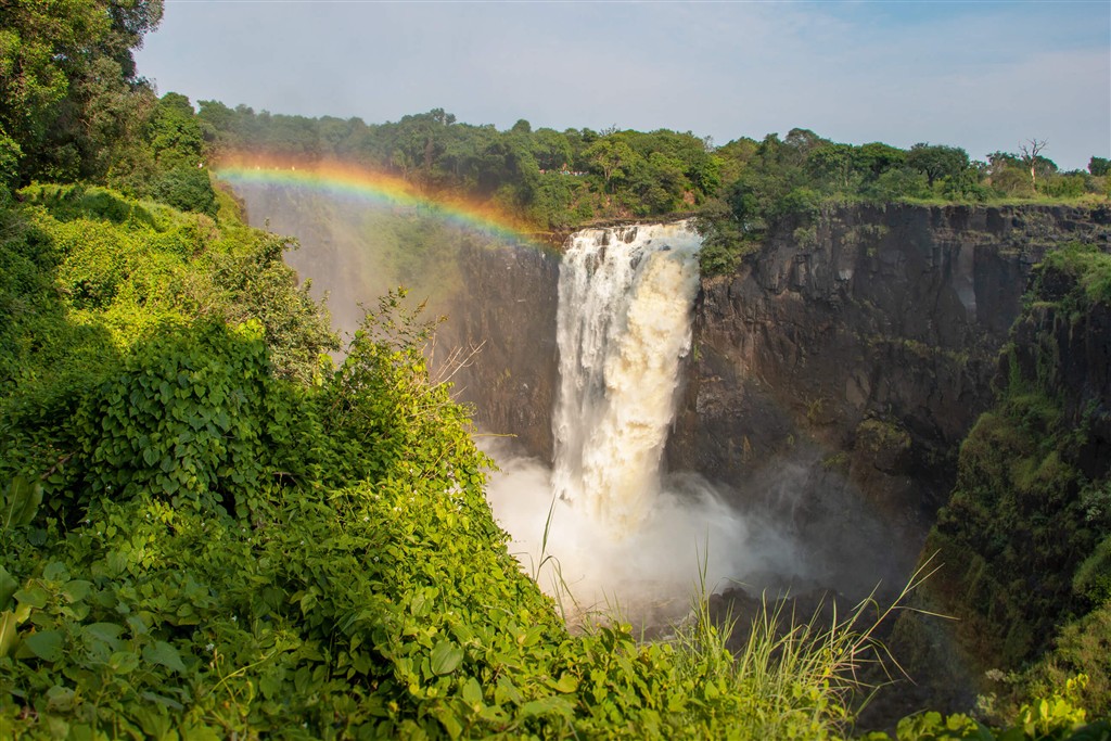 Po prechode hraníc nás čaká cesta zimbabwským národným parkom Zambezi po dobrej asfaltke až do mesta Victoria Falls. Sme na Viktóriiných vodopádoch. Jeden z prírodných divov sveta, s názvom Mosi Oa Tunya/Dym, ktorý hrmí. Hneď sa vyberieme pozrieť si tento div. Vstúpime do areálu a prejdeme sa po celej dĺžke tejto strany vodopádov od Devil´s Cataract až po vyhliadku na most. Celková dĺžka vodopádov je 1 700 metrov a hĺbka okolo 110 metrov. David Livingstone, ktorému vodopády ukázali miestni obyvatelia počas jednej z jeho prieskumných ciest v roku 1855, ich pomenoval po britskej kráľovnej Viktórii. V pôvodnom jazyku Sothov sa volajú Mosi Oa Tunya a tento názov je aj na oficiálnom zozname prírodných pamiatok a na zozname UNESCO. Prehliadku začneme pri Livingstonovej soche a skončíme o 1 200 metrov ďalej na vyhliadke na most ponad rieku Zambezi. Tento je ešte pozostatok doby budovania železnice, ktorú si zaumienil postaviť Cecil Rhodes. Táto mala spájať Kapské Mesto s Káhirou. Dielo sa mu nepodarilo dokončiť. Rhodes je pochovaný na kopci v národnom parku Matopos v Zimbabwe.