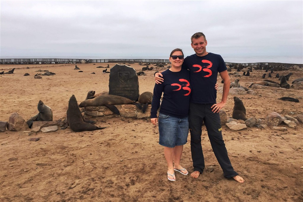 Sme na pobreží kostier, legendárnom, nehostinnom, 2 500 km dlhom pobreží, ktoré bolo postrachom pre moreplavcov. Studený Atlantik, rozpálená púšť bez známky života znamenali smrť bez ohľadu na to, či loď skončila v mori alebo na súši. Ráno sa vydáme po slanej ceste (áno, je vybudovaná zo zmesi miestnej pôdy a slanej vody) až po miesto s názvom Mys CAPE CROSS. Okrem toho, že je prvým miestom v Namíbii, kde sa Portugalcom podarilo v roku 1484 pristáť na čele s moreplavcom Diogom Cao, tak je aj domovom desiatok tisícov uškatcov, ktoré sa tu vyvaľujú na slnku, chytajú ryby, bláznia vo vode, súperia o samice... Obývajú skalistý mys a priľahlú pláž. Jeden samec má 20-30 samíc a vydávajú neskutočné zvuky. Ozaj, zabudli sme... Zápach.... Ak Vám vadí rybaco-prasací smrad, tak si určite zoberte šatku na ústa. Nenechajte si tým však pokaziť dojem. Po príchode a vystúpení z auta Vás tento odor ovalí, ale po chvíli si naň zvyknete a začnete si užívať prítomnosť uškatcov.