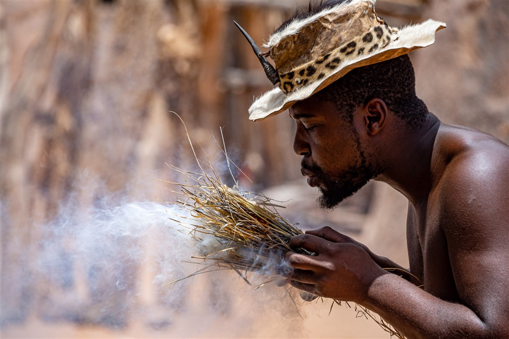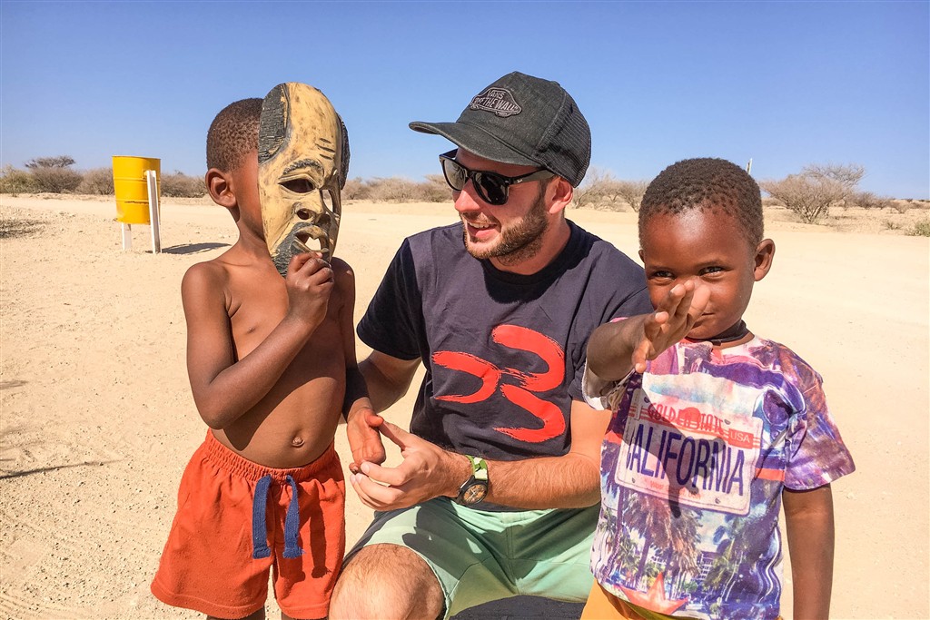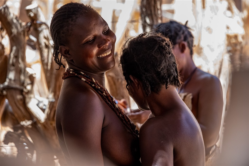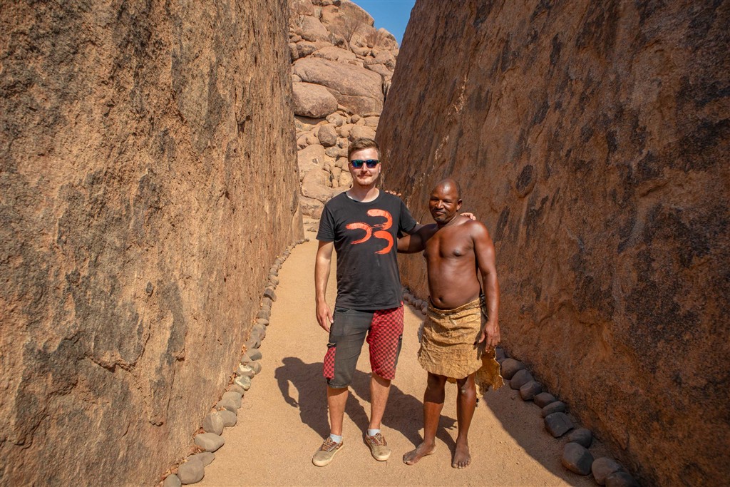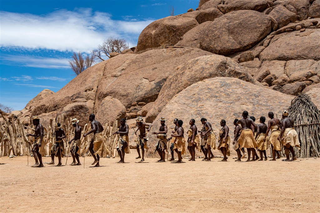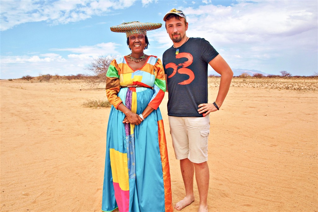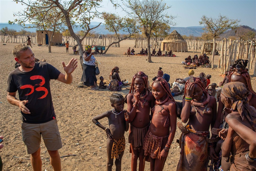 My pôjdeme navštíviť dedinu Himbov. Dedinky sú roztrúsené po krajine a splývajú s okolím. Vojdeme do jednej z nich a náčelníkovi odovzdáme darčeky vo forme múky, oleja, tabaku, čaju a sušienok pre deti. Vysvetlíme si spôsob života týchto ľudí, prečo ženy nosia kožené čepce a ako sa umývajú, keď tu nie je takmer žiadna voda. Opuwo je zaujímavé mesto, kde sa miešajú kultúry a tradiční ľudia tu prichádzajú do supermarketu alebo do banky. Dva svety sa stretávajú na malom kúsku.