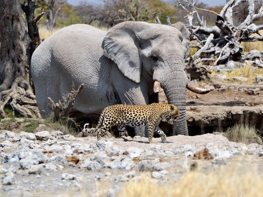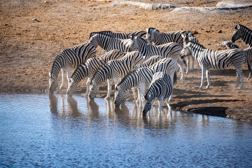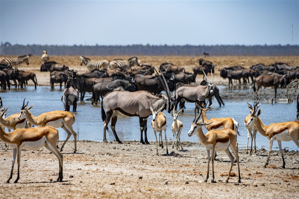 Dlho očakávané safari. Arabský výmysel, ktorý si dosýta užijete iba v Afrike. Africká fauna je legendárna a národný park ETOSHA Vám ukáže svoje tajomstvá. Perla medzi národnými parkmi - 4 600 km2 z jej rozlohy 22 500 km2 tvorí biela soľná panva. Zvieratá tu majú vyhradenú väčšinu územia a vy ich nerušíte svojou prítomnosťou, ale, na druhej strane, je tu zveri dosť na to, aby ste mali vynikajúce safari a videli maximum z africkej divočiny. Žijú tu všetky atraktívne zvieratá s výnimkou byvola, krokodíla a hrocha. Vzhľadom k nedostatku vody sa im tu nemôže dariť. Ostatní obyvatelia buša sú ale prítomní. Stretnete žirafy, nosorožce, slony, stáda zebier, skákavých antilop, pakone a množstvo impál, skvelých skokanov zo skupiny antilop. Nachádzajú sa tu aj jedineční priamorožci juhoafrickí, ktorí sú symbolom suchých oblastí Namibu a Kalahari. Jeho iný názov je oryx alebo gemsbok. Ak budete mať šťastie, natrafíte na šelmy. Vyskytujú sa tu všetky veľké mačky – lev, leopard a gepard. Hľadajte šakalov, hyeny, pštrosy, hady, varany, korytnačky, orly, supy, karakaly. Park je dobre prístupný aj pre osobné autá, a tak si môžete spraviť vlastné safari, bez miestneho sprievodcu a pridať tak niekoľko hodín jazdenia naviac.
