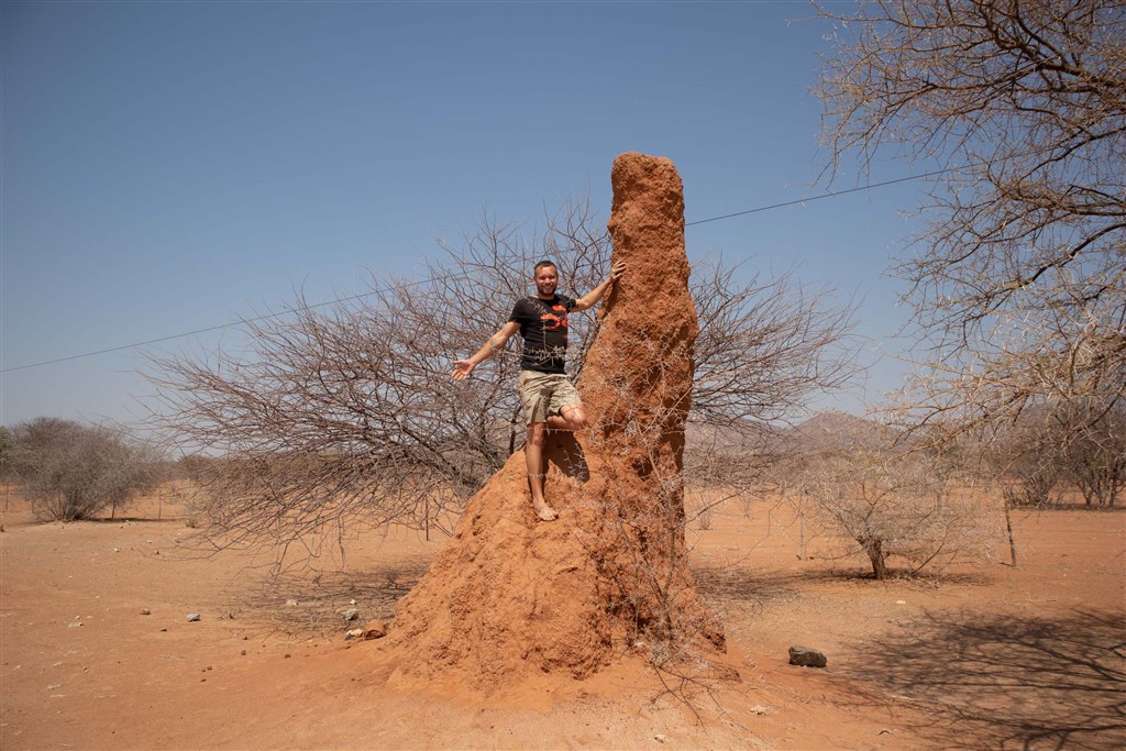 O niekoľko kilometrov ďalej, v meste Khorixas, nastúpime na asfaltovú cestu, aby sme z nej mohli zísť hneď za mestom a pokračovať až po Kamanjab po prašnej ceste. V Kamanjabe nás čaká pevná cesta, ktorá nás dovedie až do Opuwa, hlavného mesta Kaokolandu. Ten sa začína niekde na úrovni juhozápadného rohu národného parku Etosha. Sledujte cestu okolo seba, možno uvidíte niektorých z divých obyvateľov tohto regiónu. Ako sa blížime k Opuwo, popri ceste pribúdajú termitiská. Stavby vysoké až štyri metre tu dotvárajú opäť inú scenériu. Pozrieme sa na ne zblízka a dozvieme sa niečo o termitoch. Už druhým dňom ideme oblasťou, kde bývajú ľudia kmeňa Herero. Muži vyzerajú ako bežní obyvateľ Namíbie, ale ženy sú o niečom inom. Mohutné dámy, ktoré sa obliekajú do zvláštnych šiat a ešte zvláštnejších čepcov. V meste Opuwo ich uvidíme v spoločnosti žien kmeňov Himba a Zemba. Oba tieto kmene žijú v oblasti severnej Namíbie a južnej Angoly. Rozdiel je vo výzore. Himbské ženy si telo a vlasy natierajú zmesou hlinky (okra) a kravského tuku, kdežto zembské ženy nie. Preto je aj výzor hímb tak exotický.